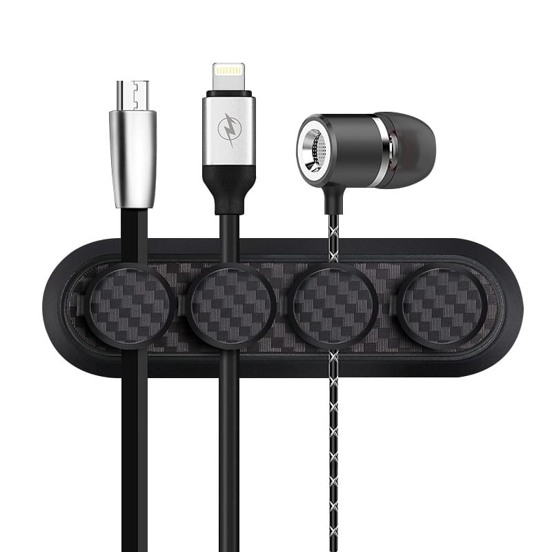 Organizator de cabluri Timebox, cu 4 locuri, noptiera, masa, mașina, Negru