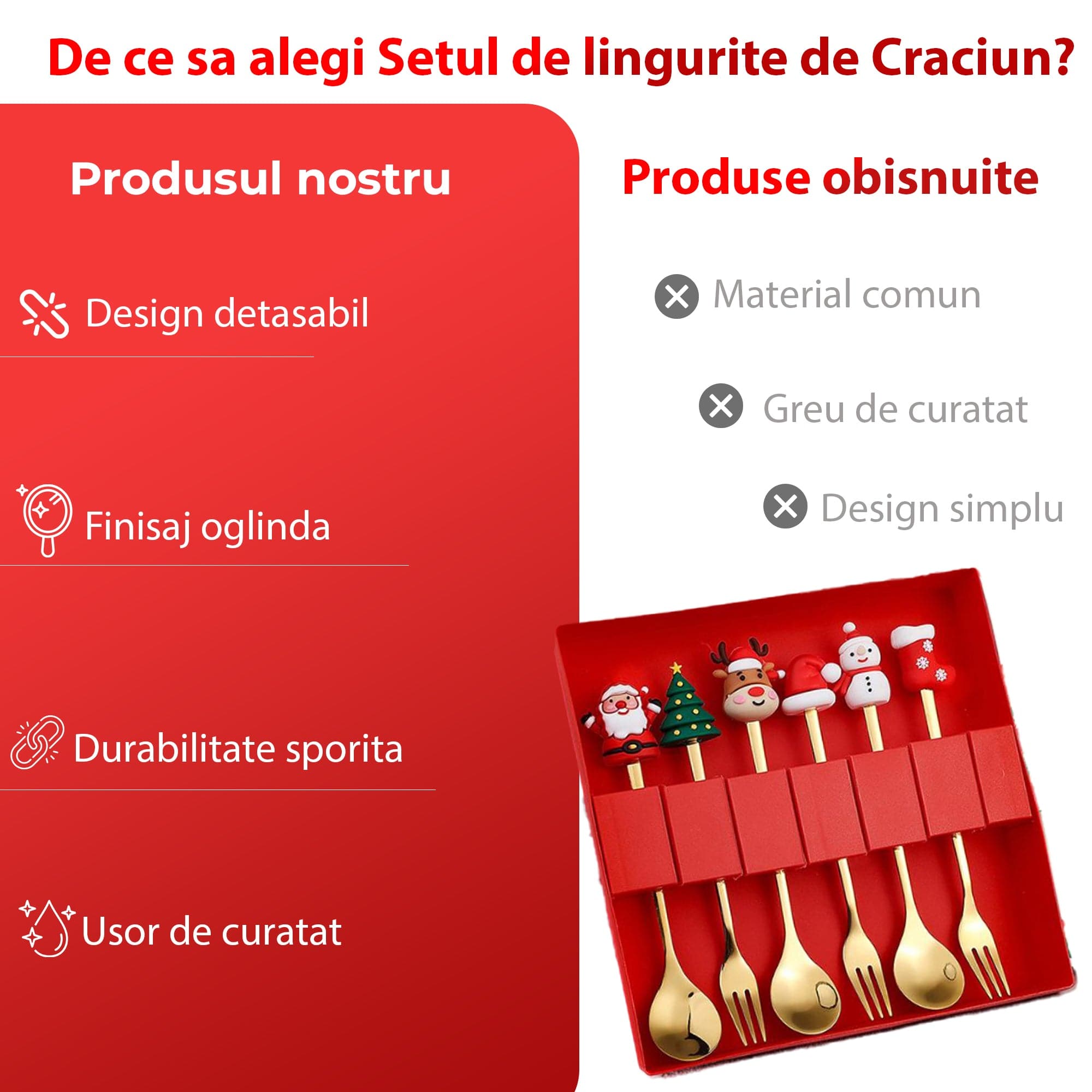 ⚡ Set Tacamuri Inox Craciun - Lingurite & Furculite Festive ⚡