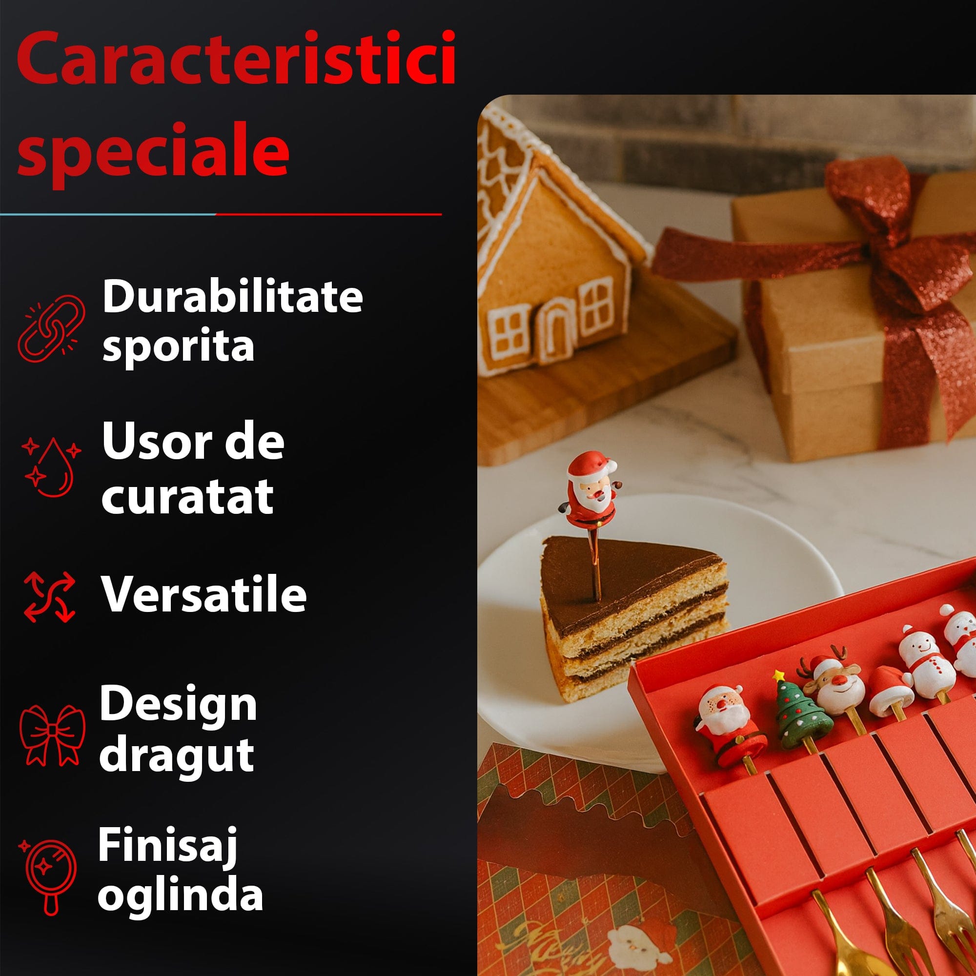- Set complet de 6 piese: lingurite si furculite cu modele festive (ren, brad, Mos Craciun, om de zapada)