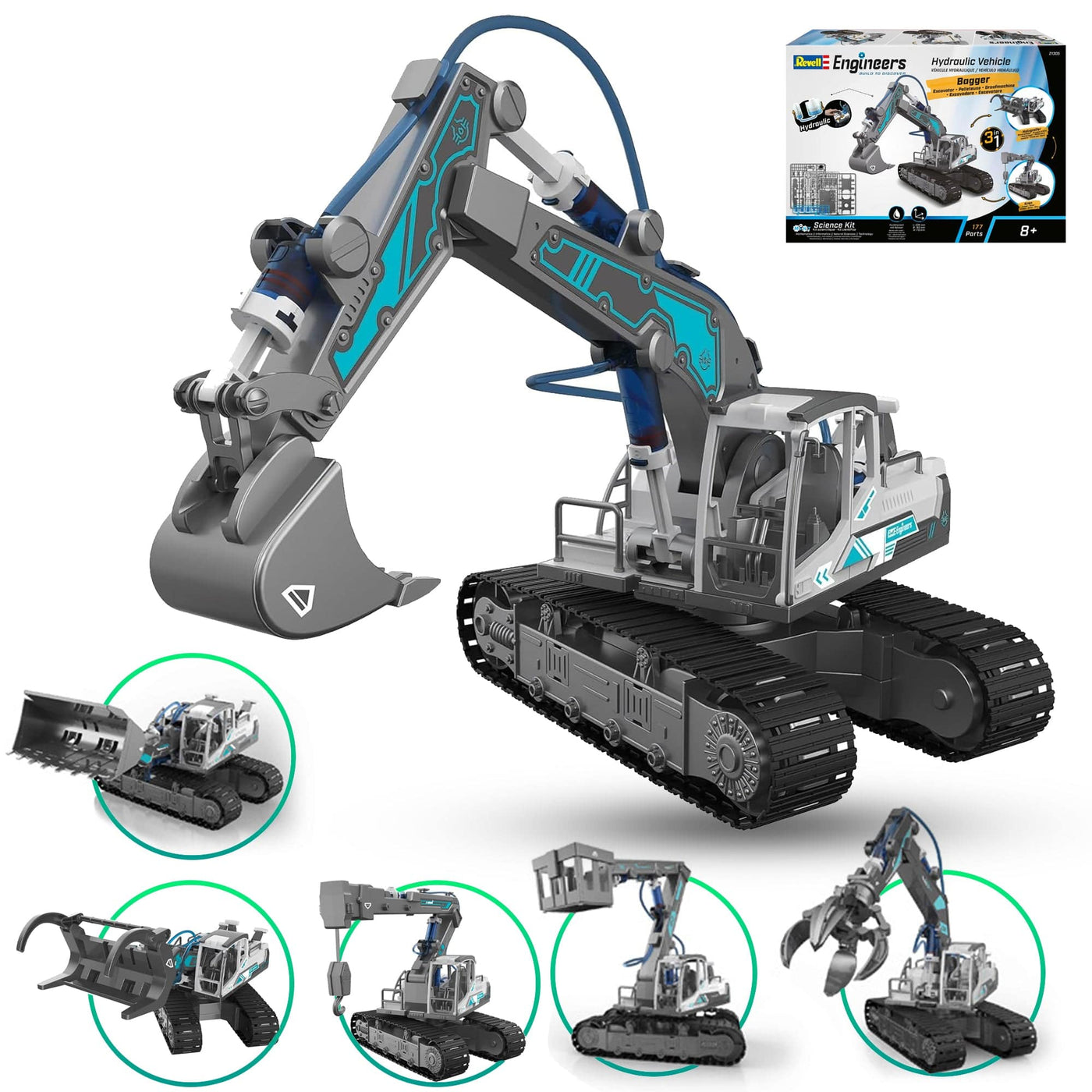 Set Educativ 6 in 1 de Constructie Hidraulica pentru Copii 8–12 Ani – Excavatoare, Macara si Incarcator Lemne, Joc Interactiv STEM