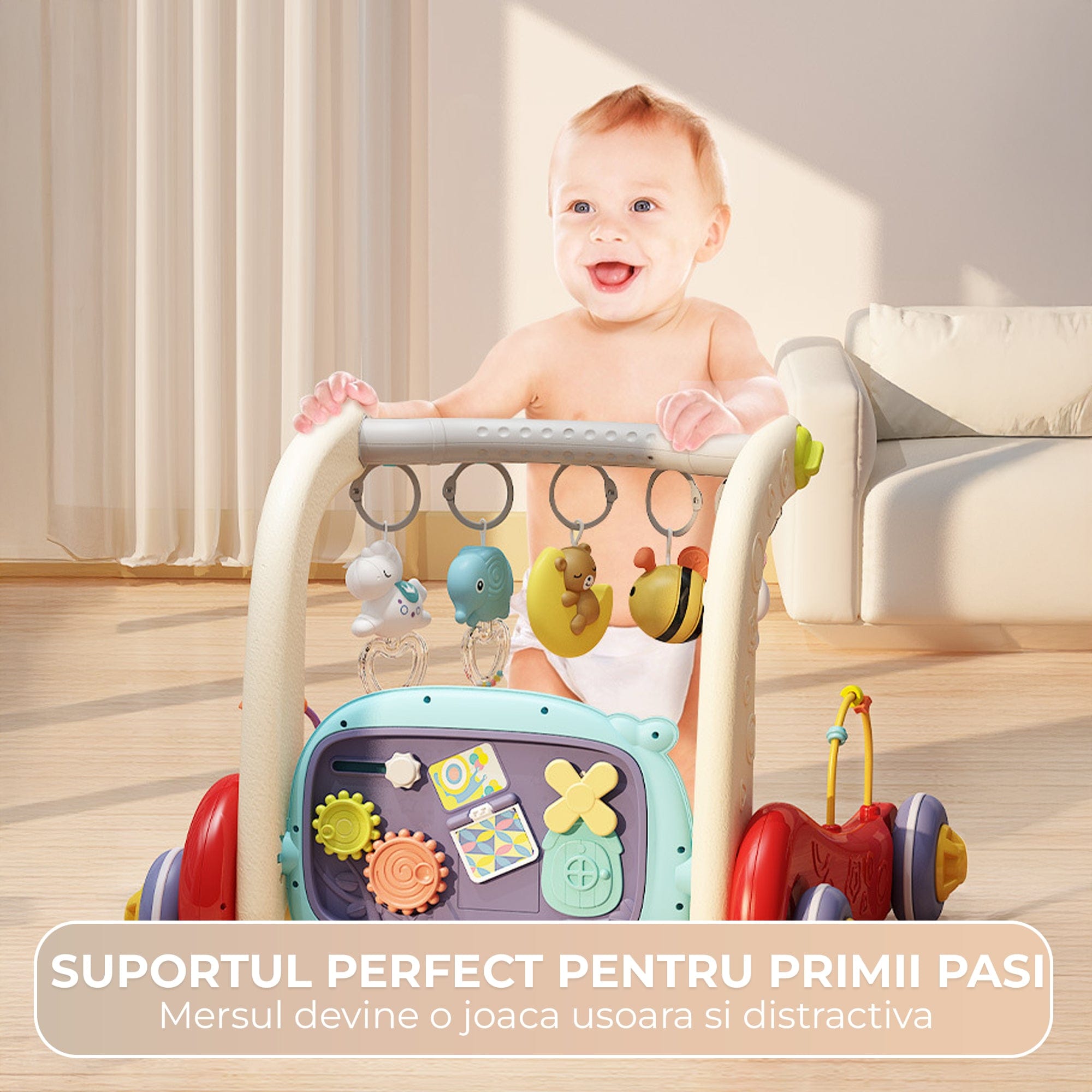 4-in-1: joaca pe spate, pe burtica, in sezut si primii pasi