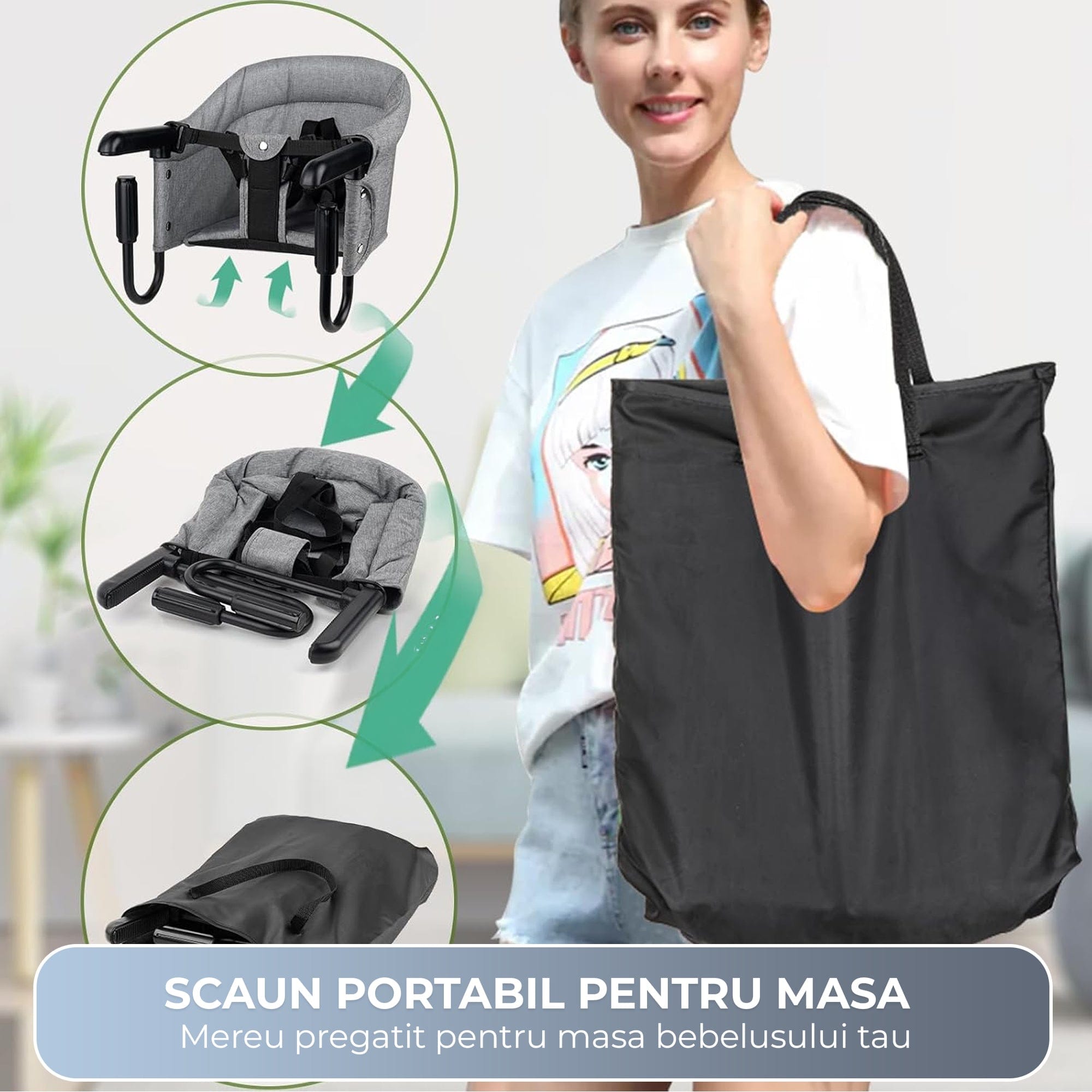 Pe termen lung, alegerea unui scaun masa portabil bine conceput inseamna mai putin stres si flexibilitate in orice context. Cadru metalic rezista uzului zilnic, iar prindere pe masa asigura aceeasi experienta familiara pentru copil, chiar si in locuri noi. Mecanismul pliabil sustine economisirea de spatiu acasa, iar portabilitatea incurajeaza iesiri mai dese fara grija echipamentului. Pentru parinti moderni, acesta este pachetul echilibrat: siguranta la masa, curatare rapida si libertatea de a lua pranzul oriunde, de la bucatarie la restaurante si in calatorii.