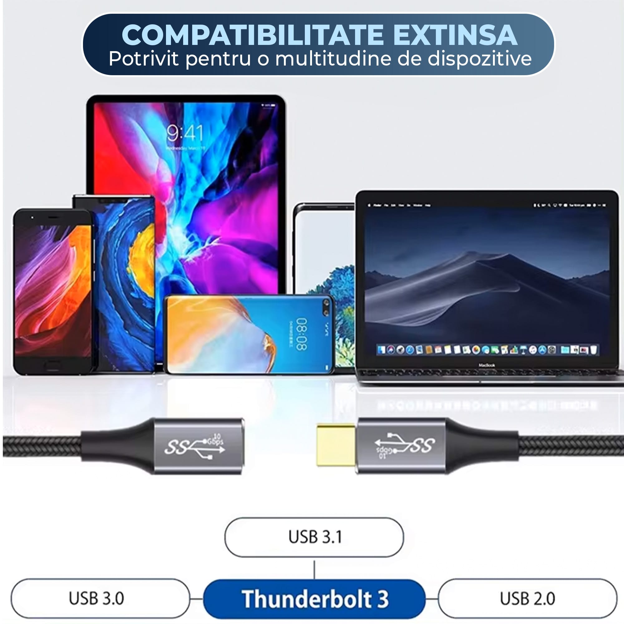 - Compatibilitate extinsa: Ideal pentru incarcarea si transferul de date pentru dispozitivele compatibile cu USB-C, inclusiv laptopuri, telefoane, tablete si alte gadgeturi moderne.
