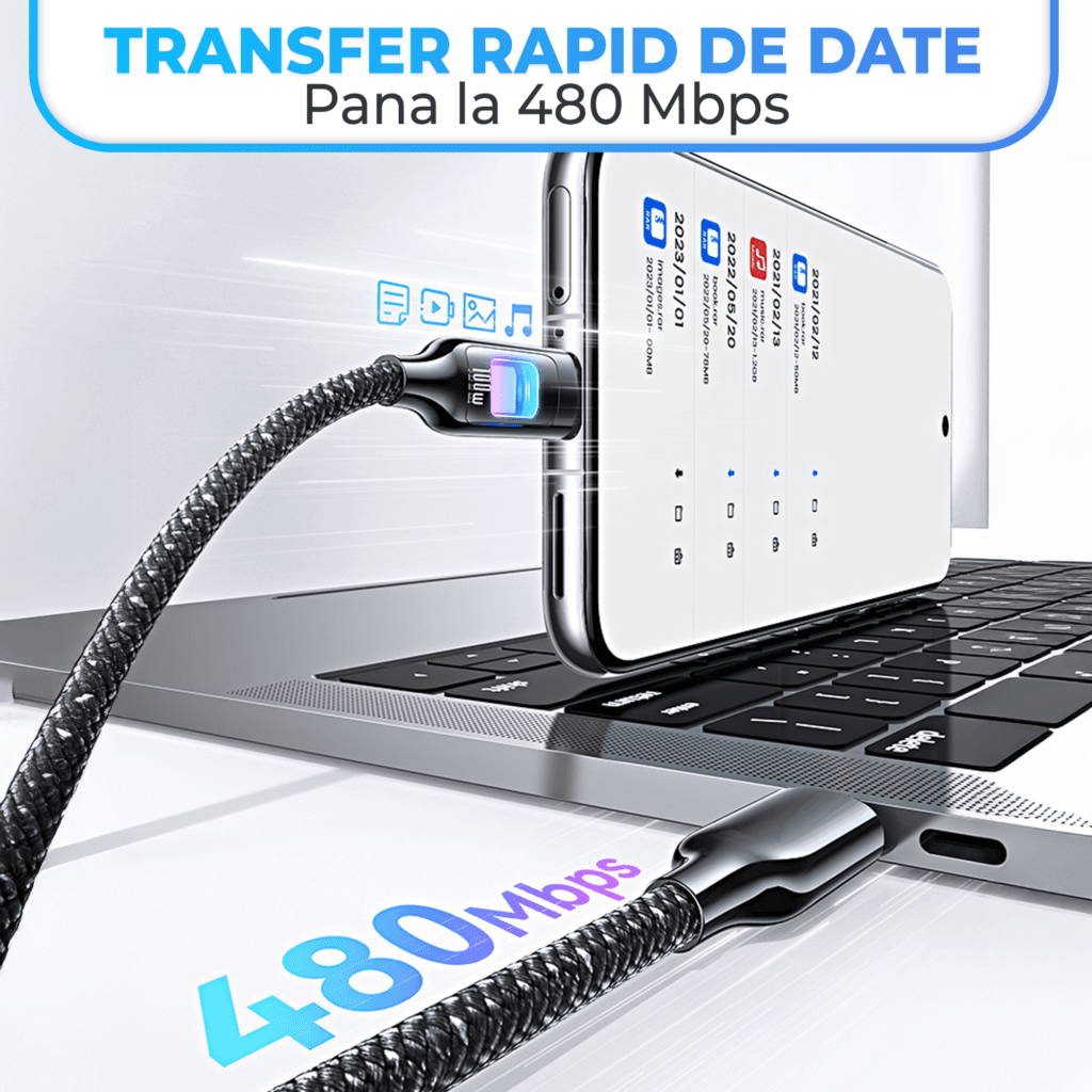 - USB-C la Type-C: Compatibil cu iPhone 15, Macbook, Android si altele.