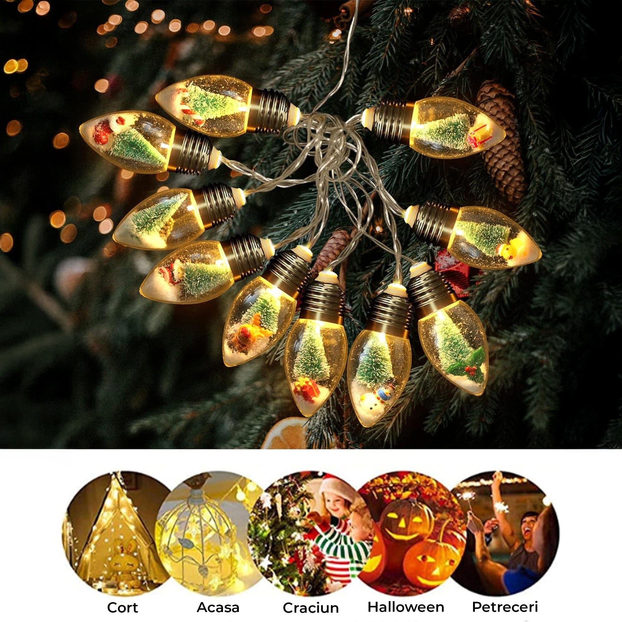 ⚡ Instalatie Craciun LED Snow Globe 2m, 10 becuri, Baterii AA ⚡