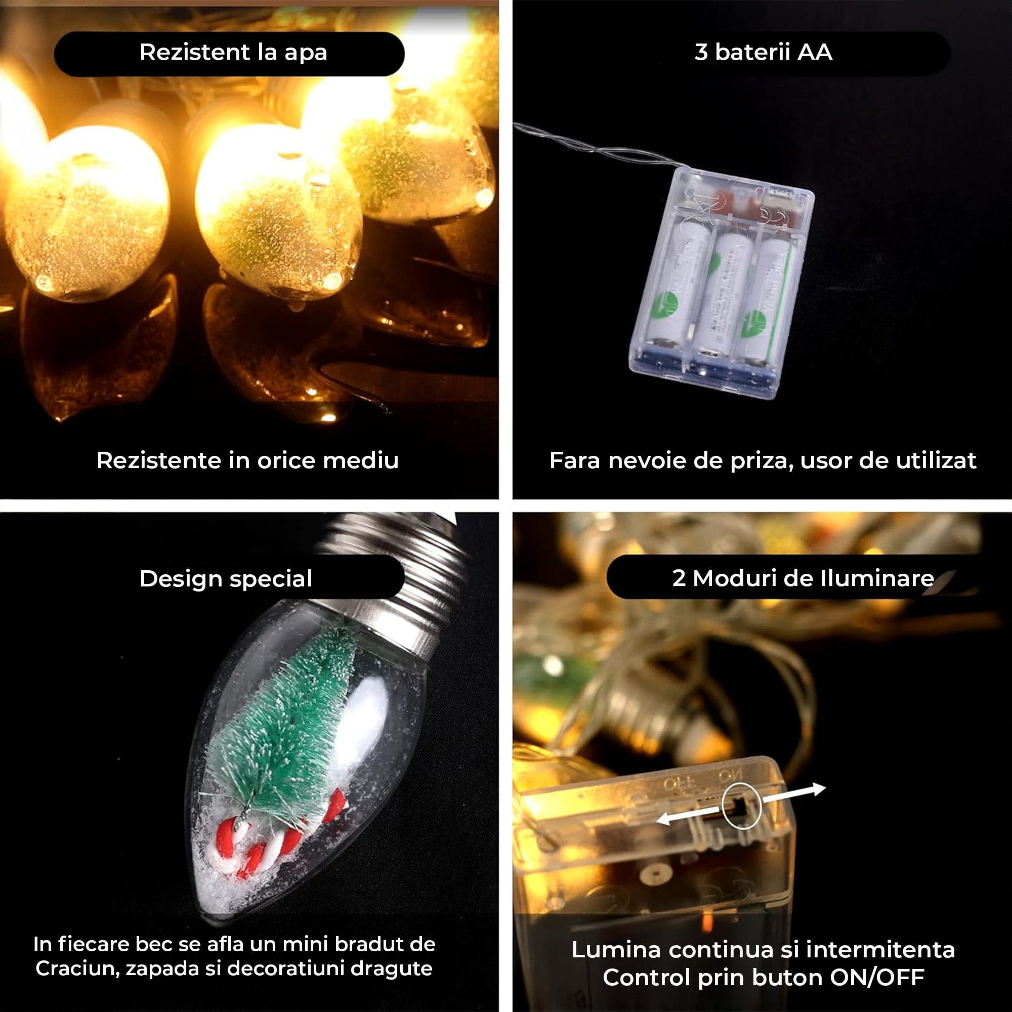 - Instalatie festiva de 2 metri cu 10 becuri LED tip Snow Globe