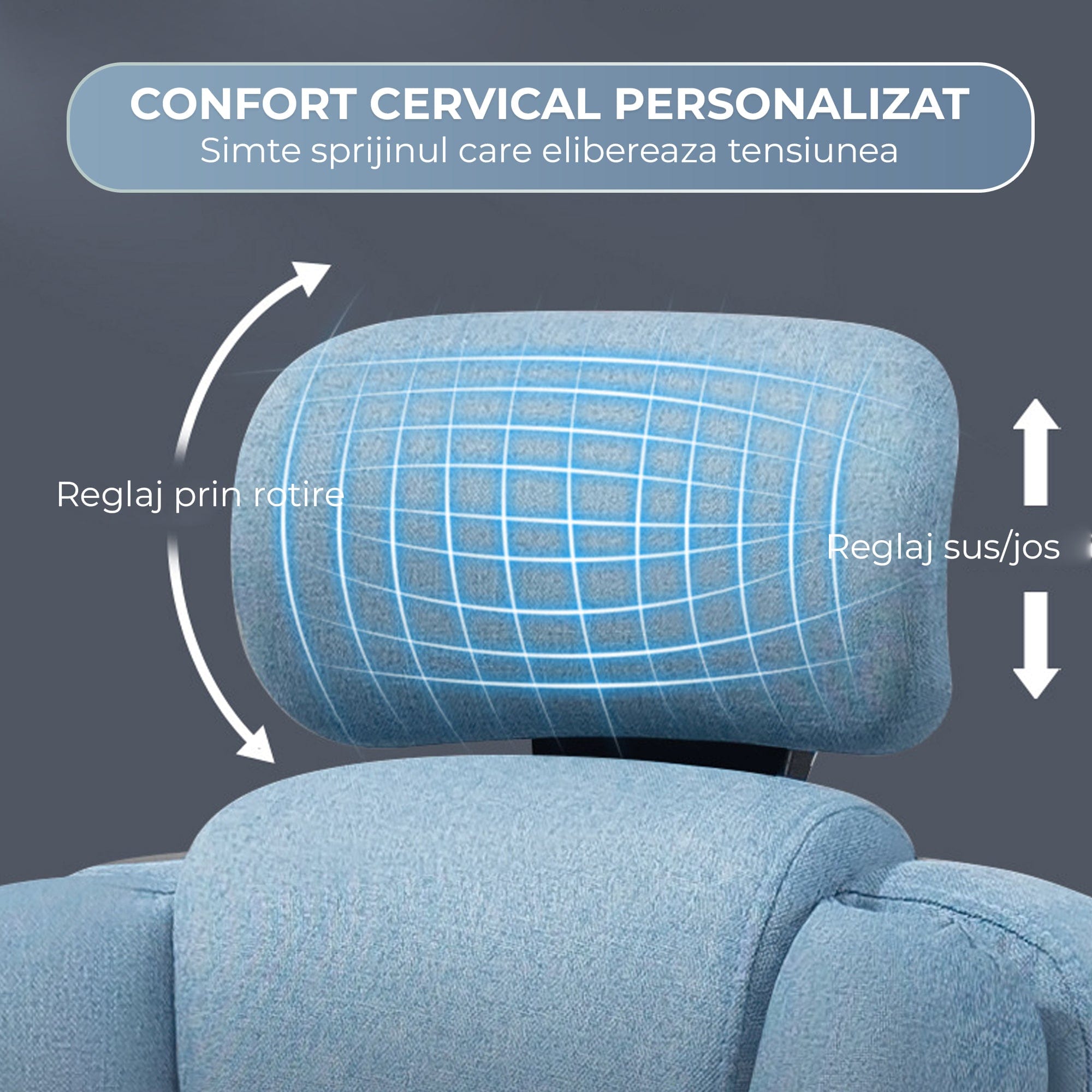 • Personalizare rapid: reglaje intuitive, cu tetiera si inaltime ajustabila pentru poziție corecta.