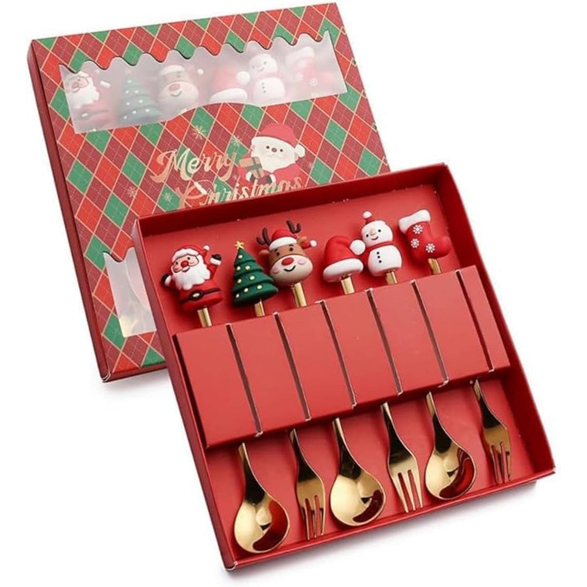 Setul contine 6 piese: lingurite si furculite cu teme de Craciun.