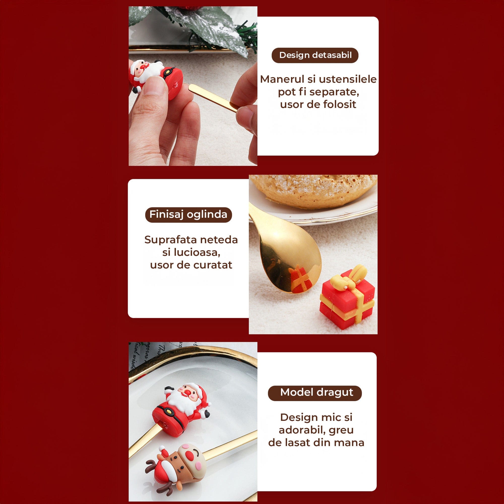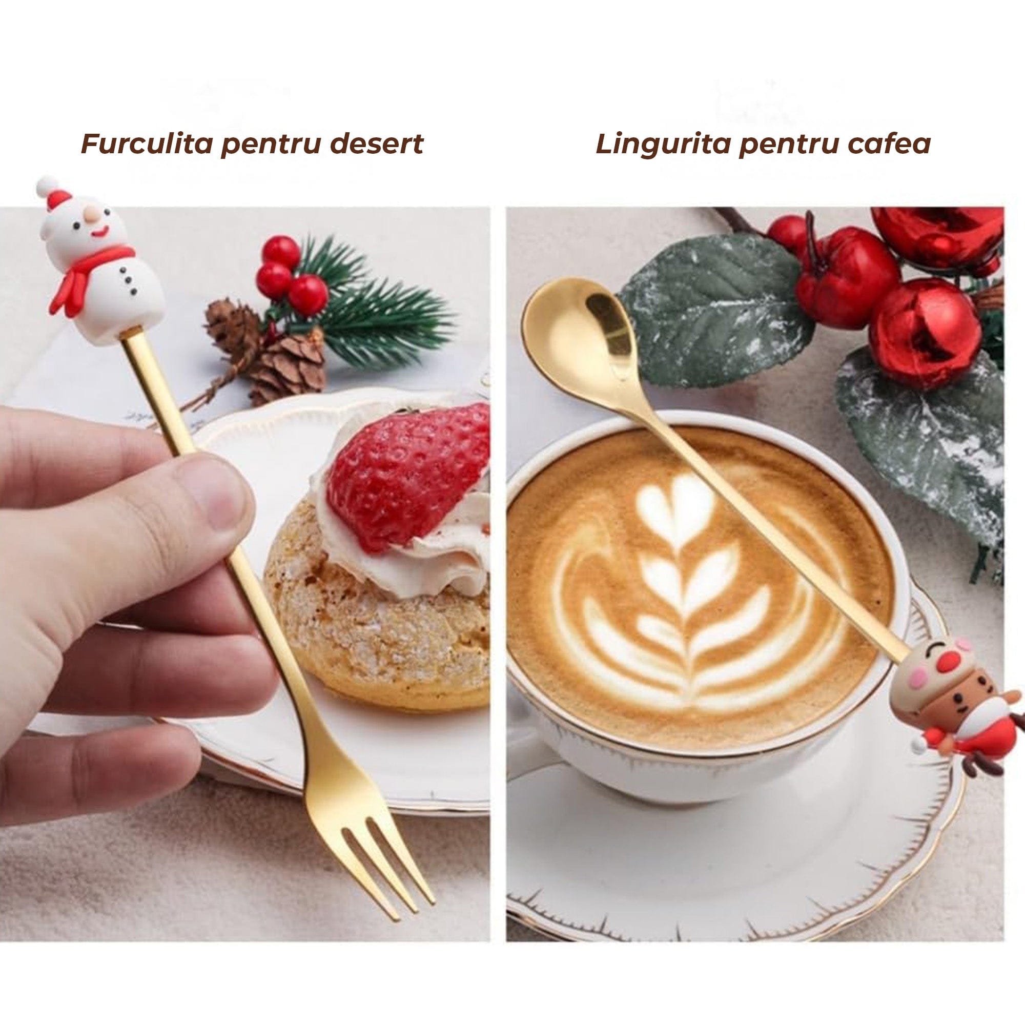 ⚡ Set Tacamuri Inox Craciun - Lingurite & Furculite Festive ⚡