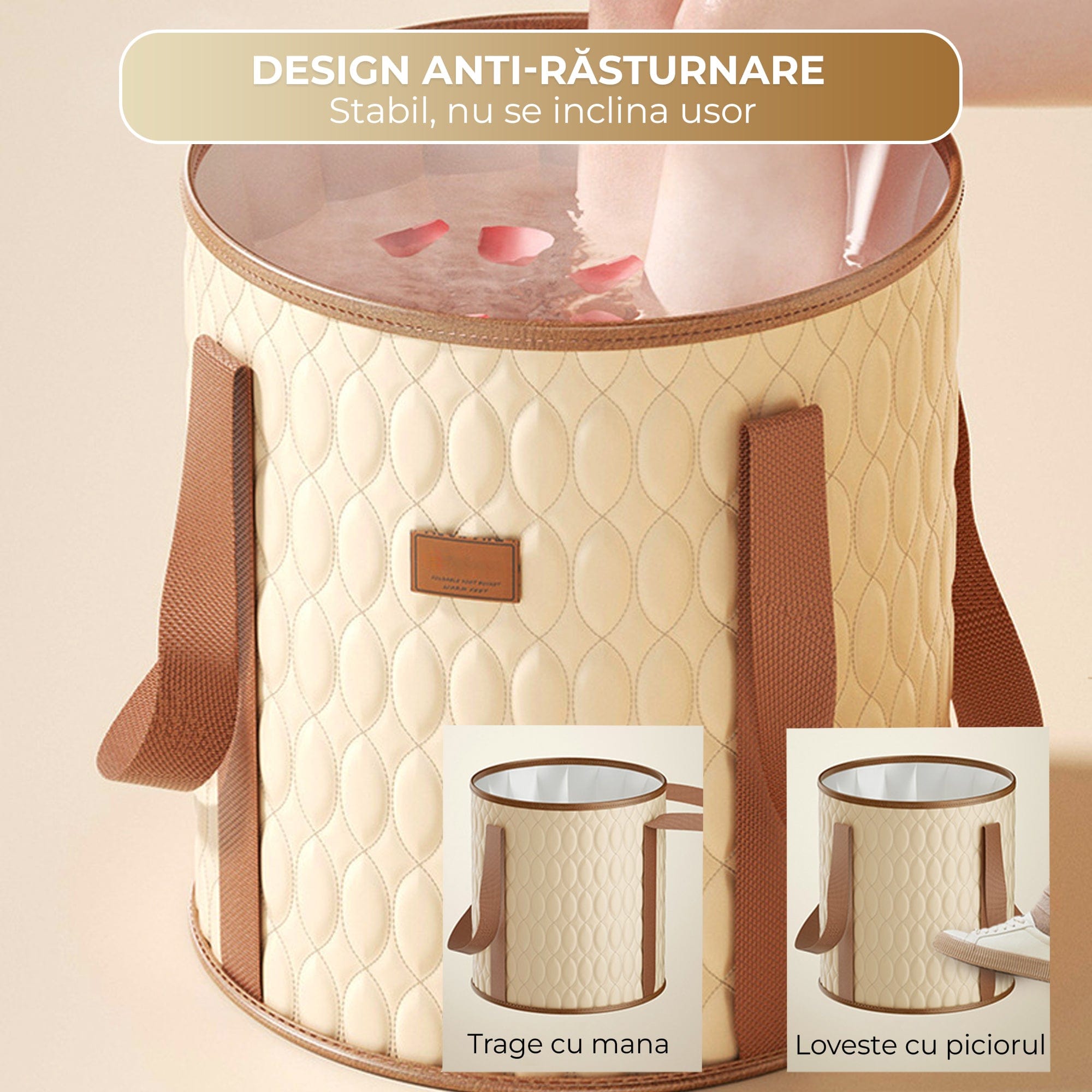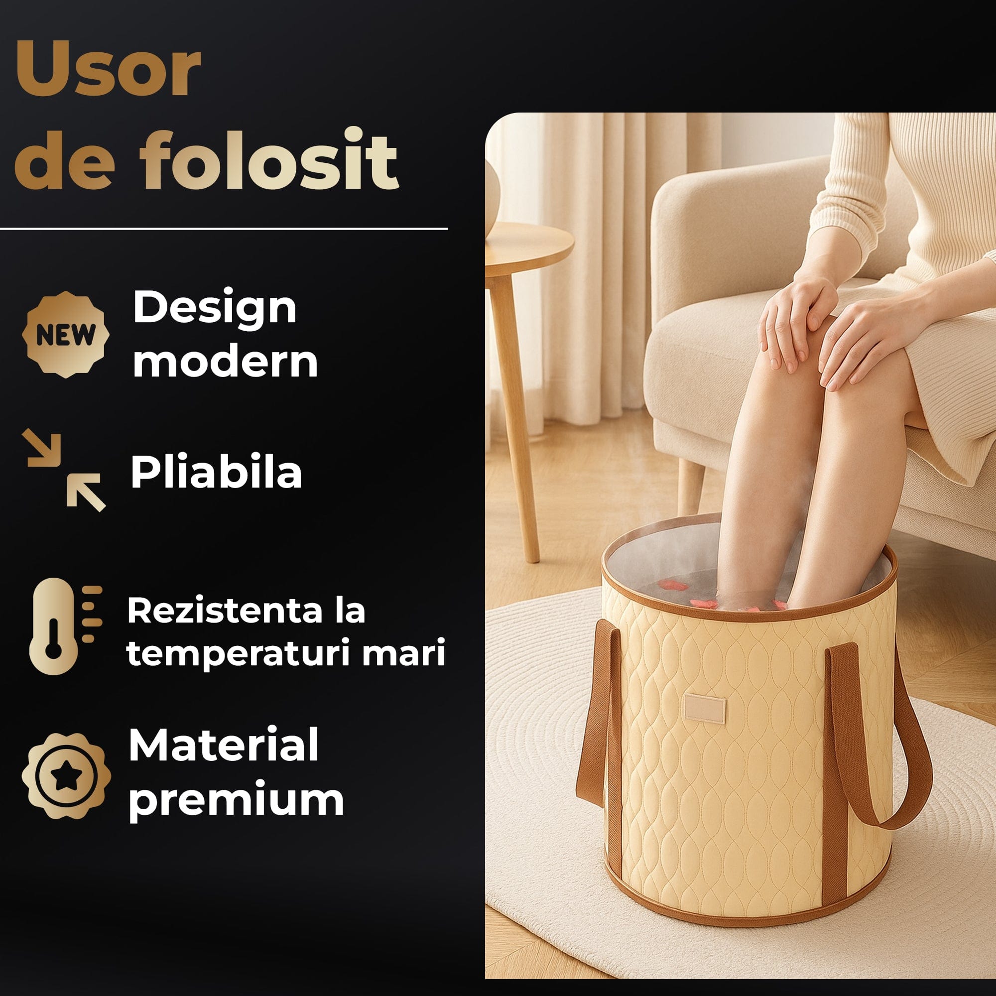 Cada pliabila pentru picioare SPA– Design premium din PVC, Pliabila si portabila, Inaltime extinsa peste genunchi, Izolatie termica pentru mentinerea caldurii, Ideala pentru relaxare, Detoxifiere si masaj la domiciliu, Bej