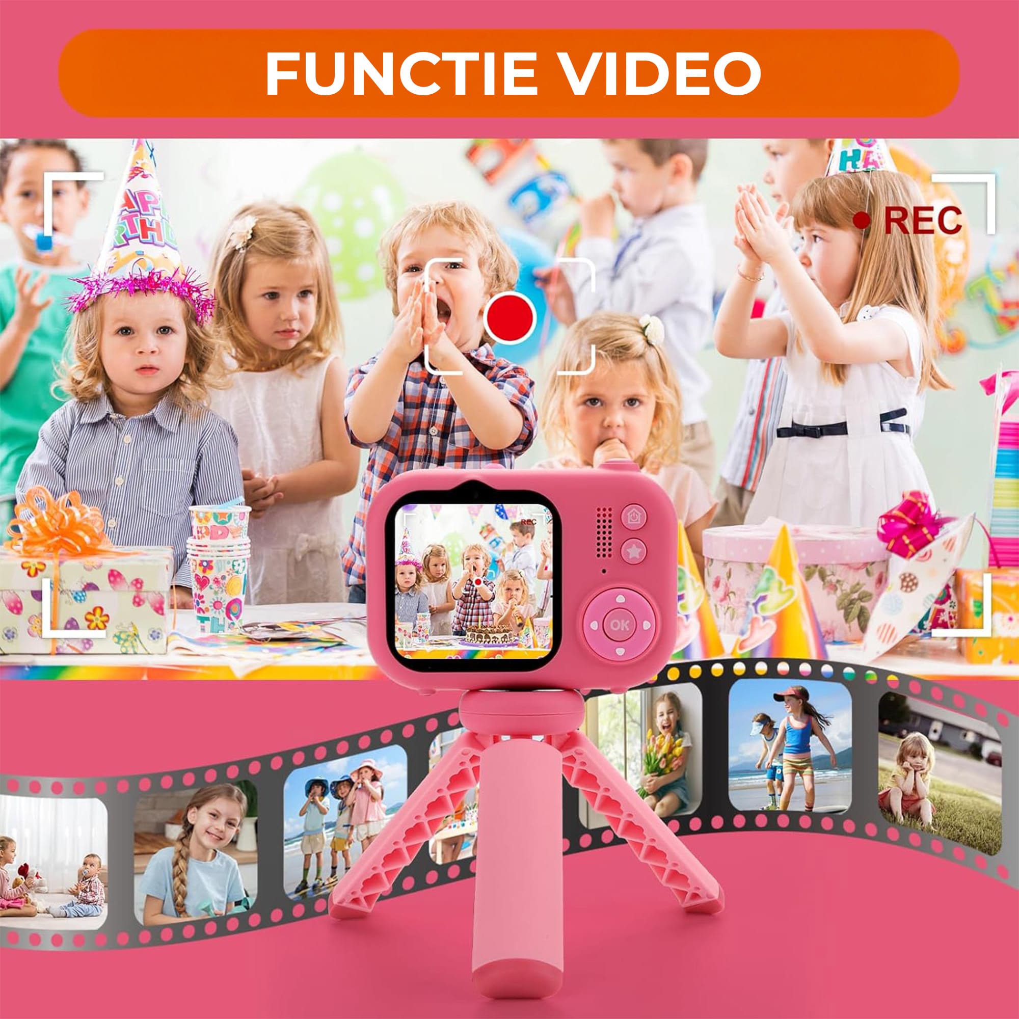 Camera Video Digitala pentru Copii cu Ecran Mare 2.4", Card 32GB, Trepied si Functie Selfie – 1080P HD, Cadou Educativ si Creativ pentru Baieti si Fetite 3-10 Ani, Ideala pentru Vlogging si Poze Amuzante, Roz