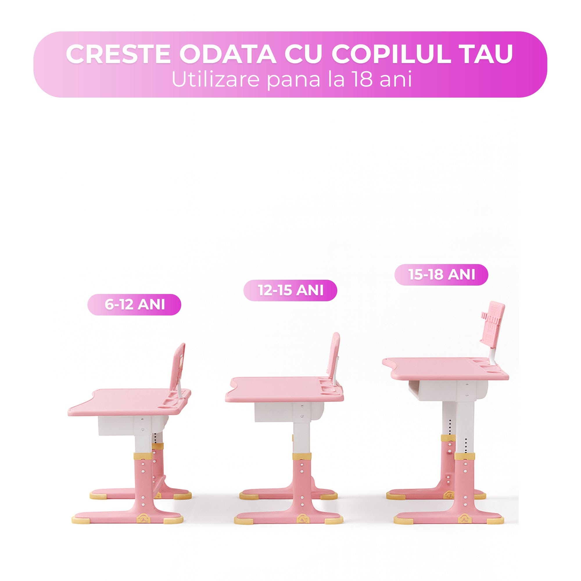 - Set birou + scaun pentru copii, reglabil pentru varste intre 6 si 18 ani