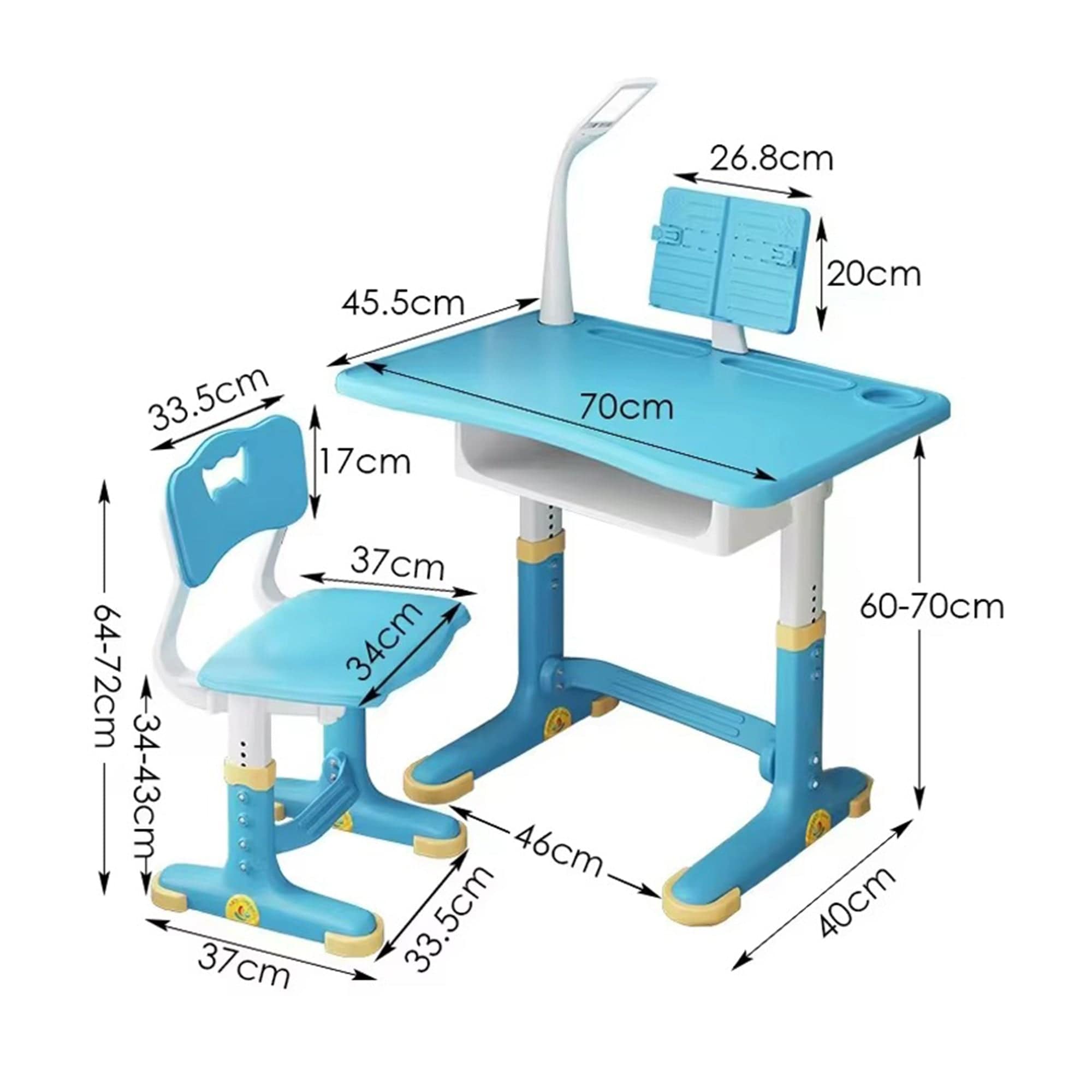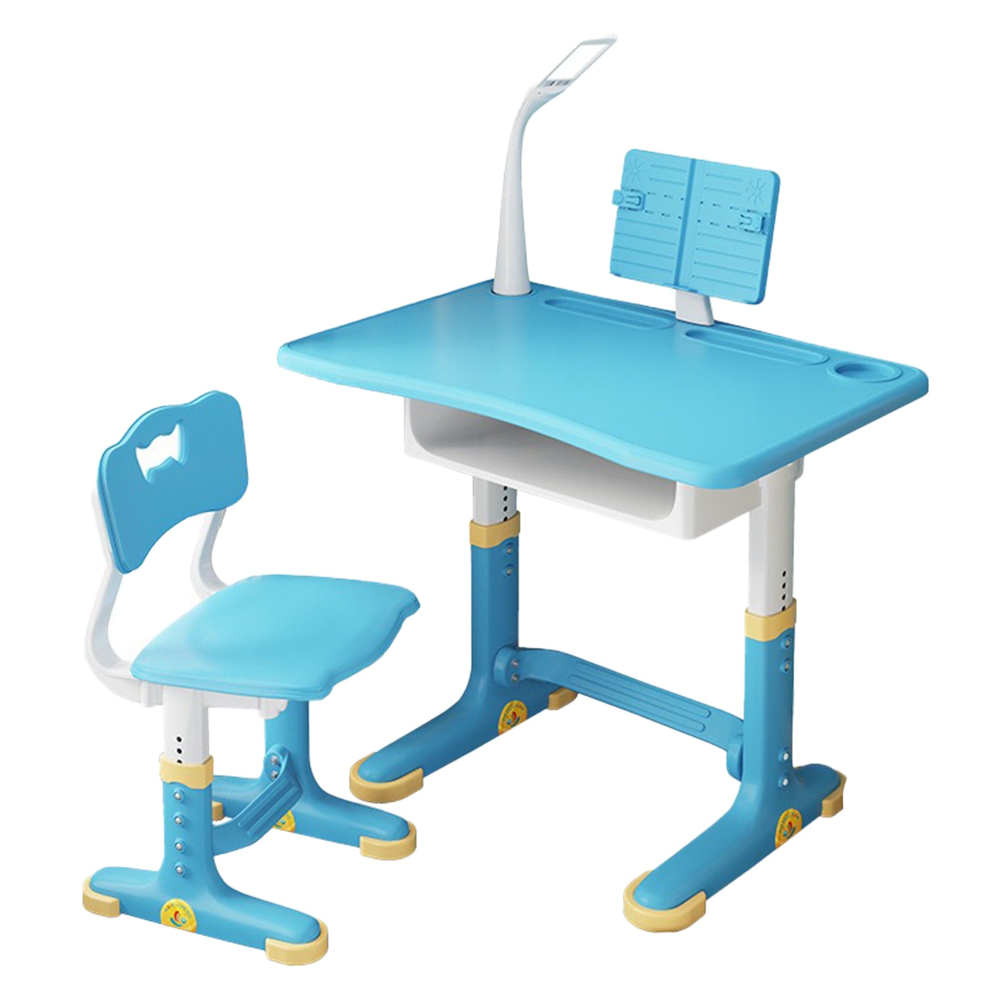 Set birou + scaun copii reglabil, 70cm, Inaltime ajustabila, Design ergonomic, Material ABS+PP, Lampa LED, Accesorii multifunctionale, 3-12 ani, Utilizare universala, Albastru