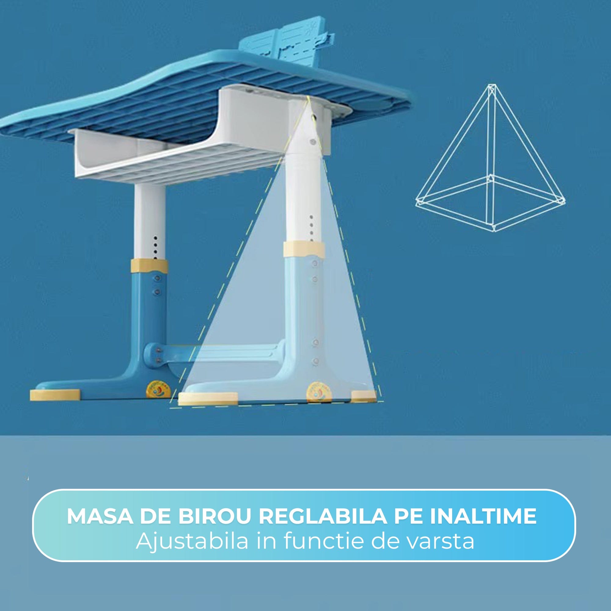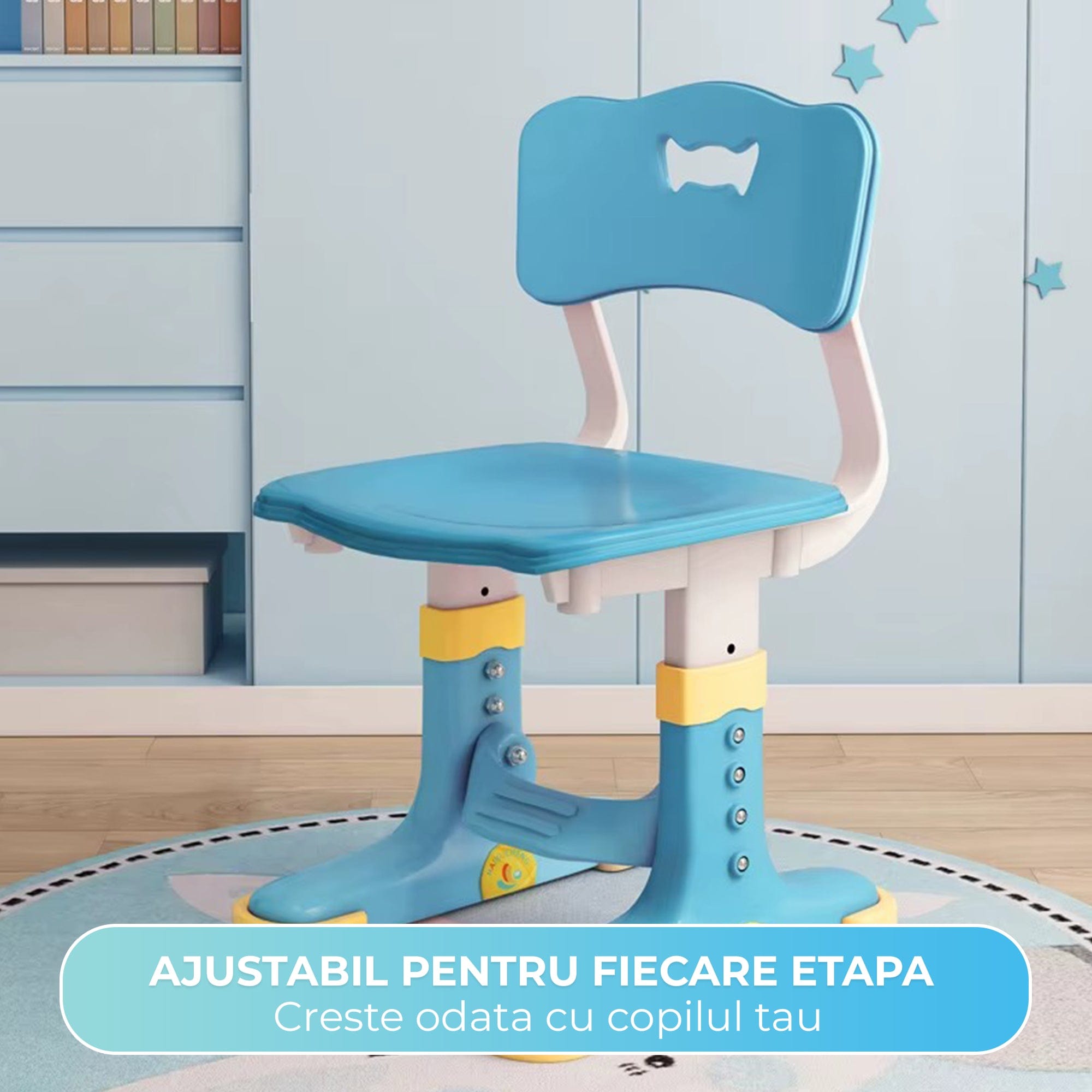 - Set birou + scaun copii reglabil (70 cm), inaltime ajustabila pentru 3–12 ani