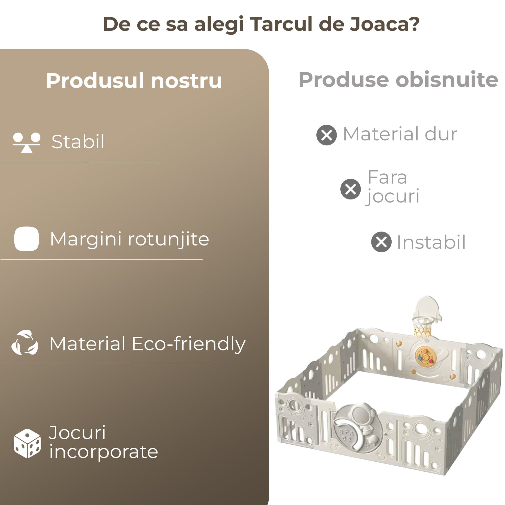 Tarc de Joaca pentru Bebelusi cu Panouri Modulabile – Gard de Protectie Interior Tip Astronaut, Accesorii Incluse, Sigur si Extensibil pentru 0–2 Ani, Ideal pentru Camera sau Living, Gri/Bej