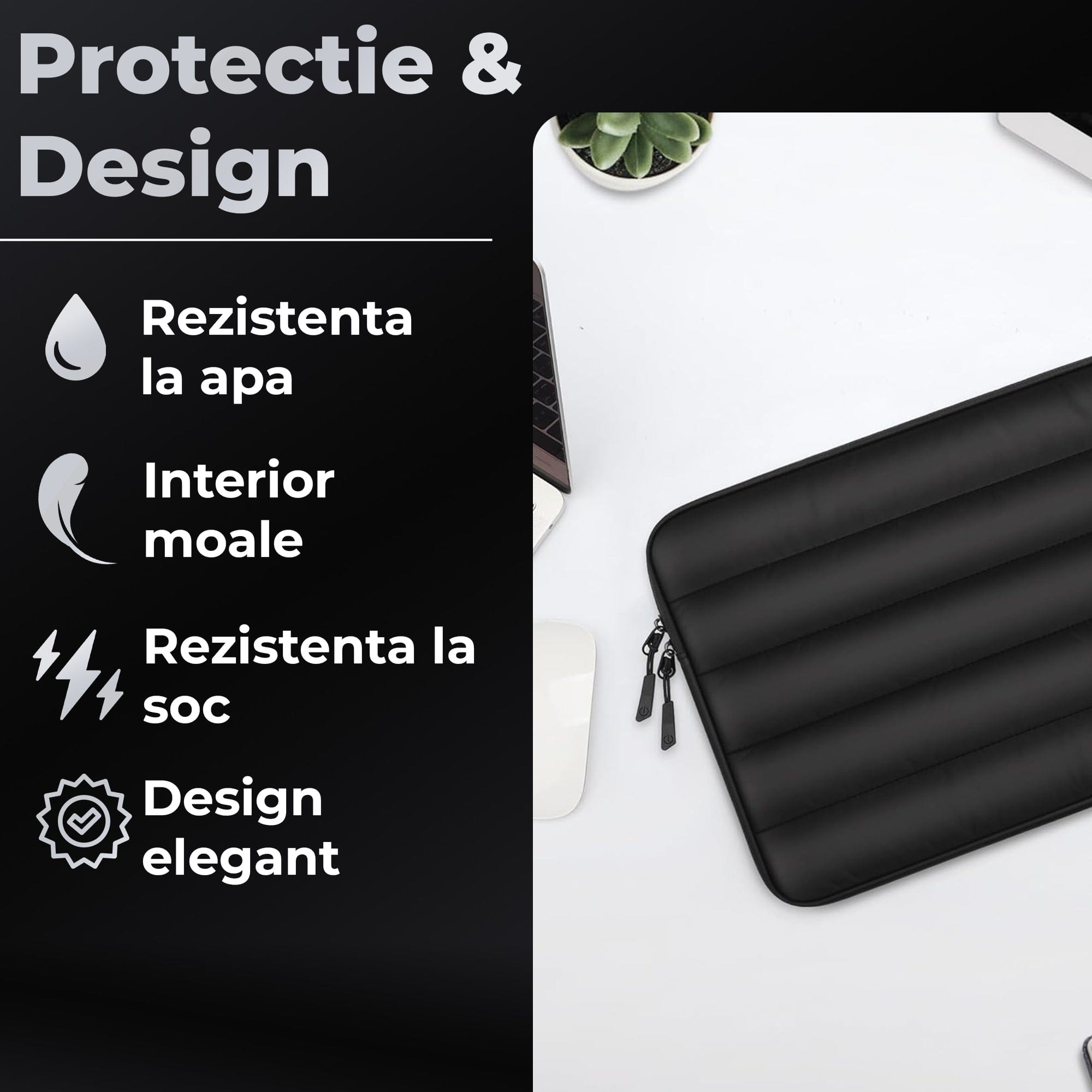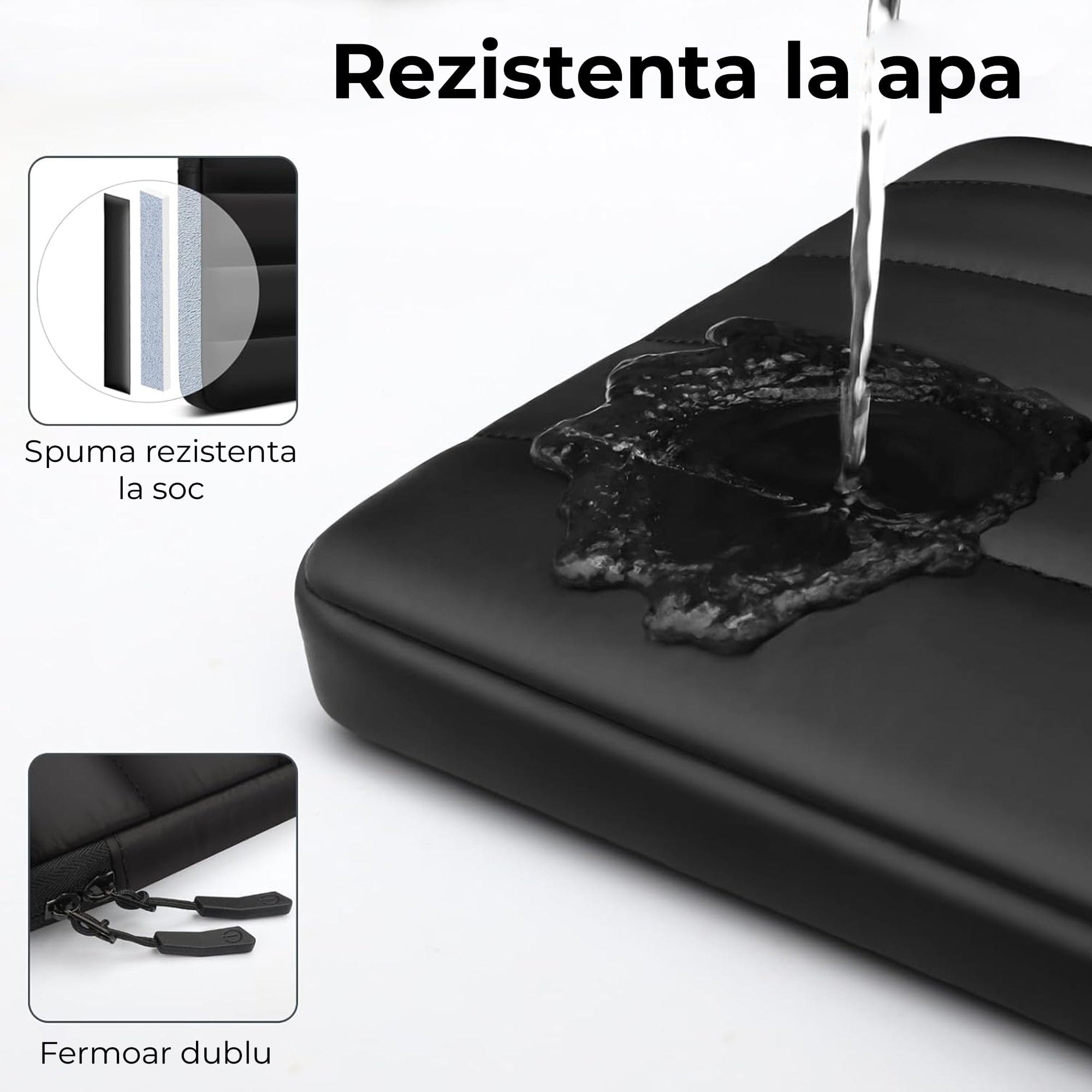 Geanta Laptop/iPad portabila Timebox, 13'', 14'' inch, pentru Notebook, Ultrabook, captusit interior cu microfibra, impermeabila, Compatibila MacBook Pro/Air, iPad Pro 12.9"/13", iPad Air 13", Negru