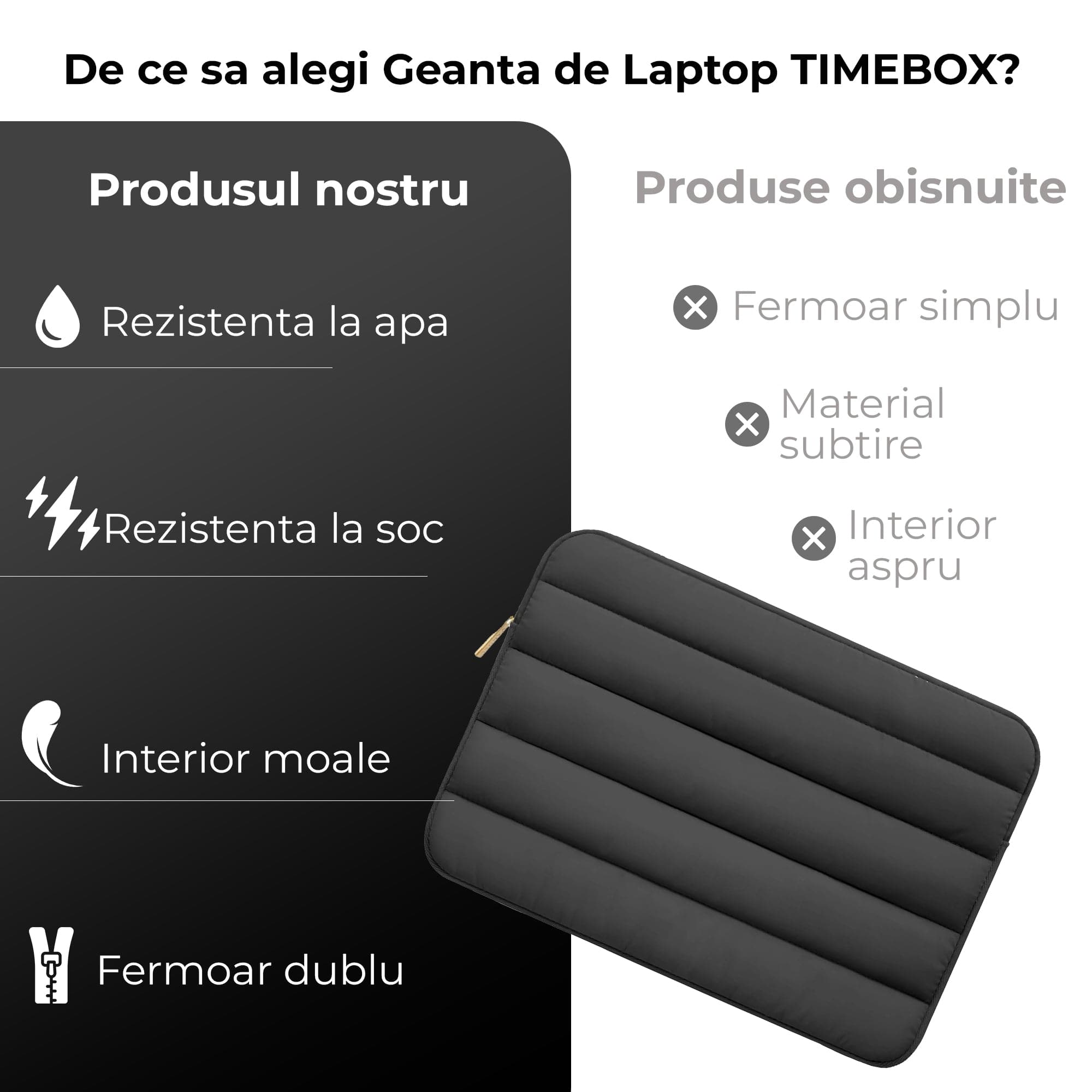 - Geantă Laptop/iPad Portabilă Timebox: Protecție și stil pentru dispozitivele tale.