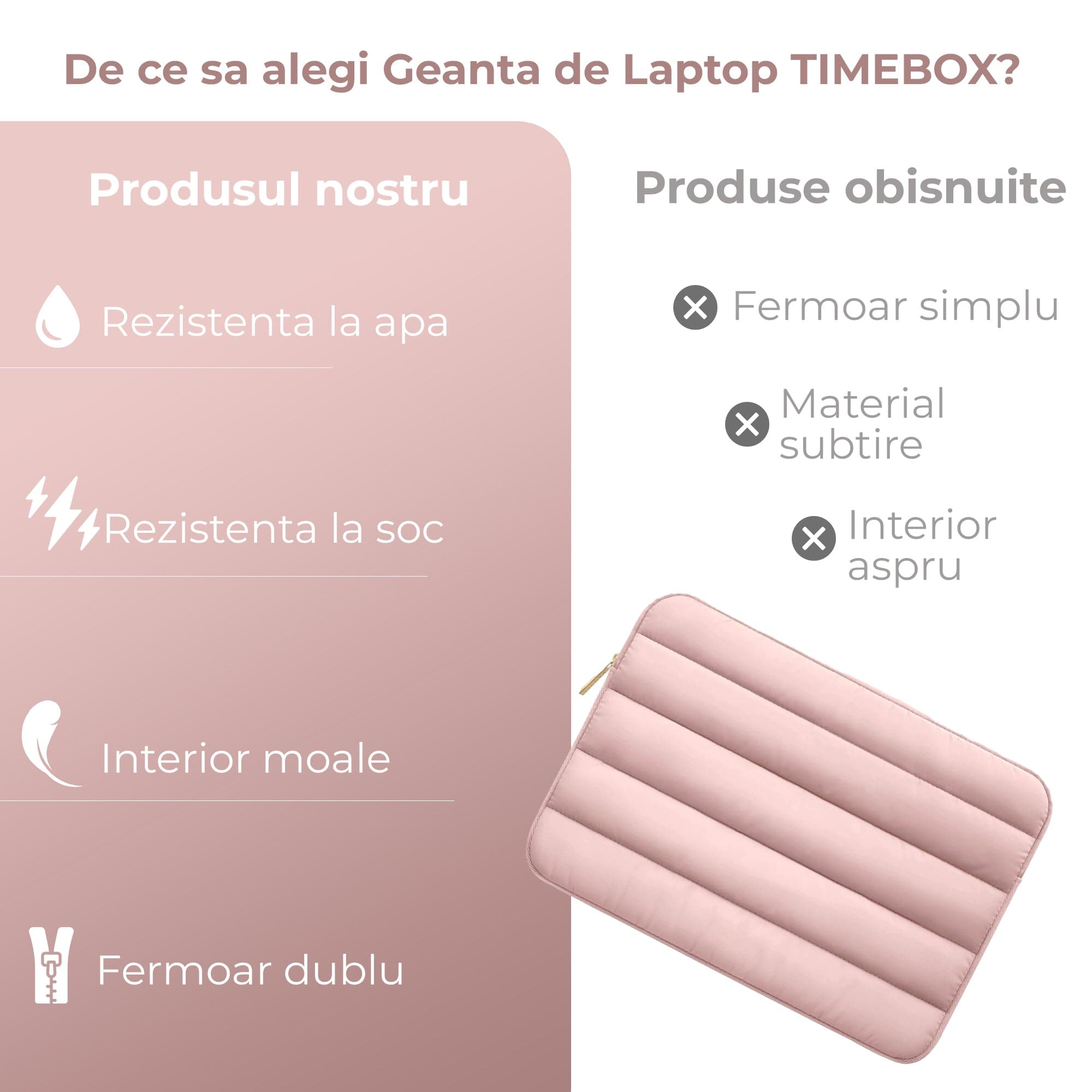 - Geantă Laptop/iPad Portabilă Timebox: Protecție și stil pentru dispozitivele tale.