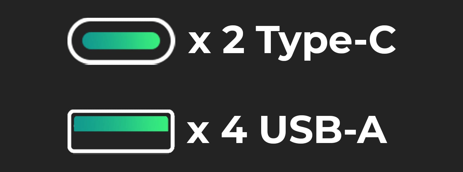 Functii | 2 x Type-C, 4 x USB, Anti alunecare, Anti-incendiu, Fast Charge, Incarca telefoanele si dispozitivele mobile, Indicator LED incarcare, Protectie impotriva supraincalzirii |