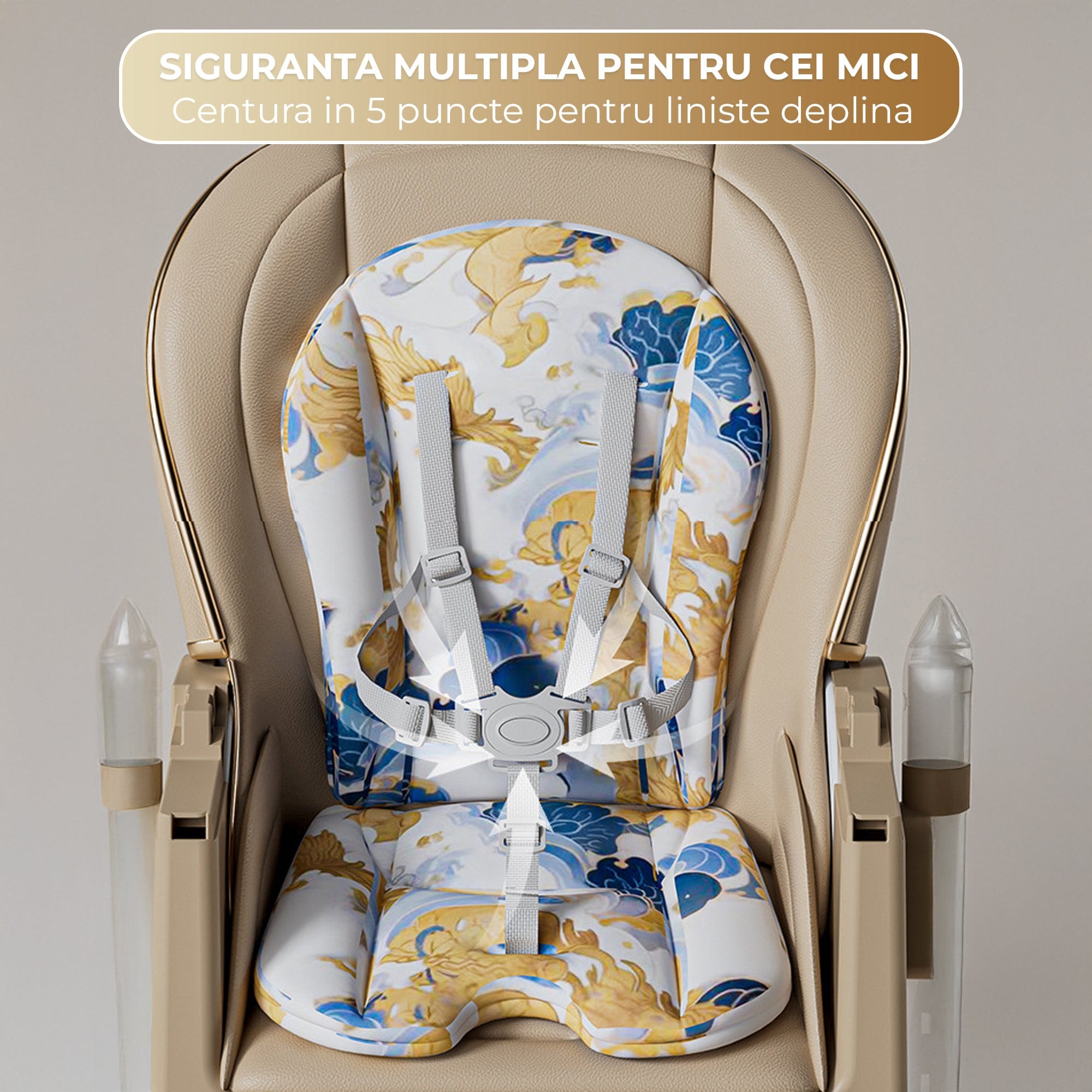 - Centura de siguranta in 5 puncte si husa lavabila pentru intretinere usoara