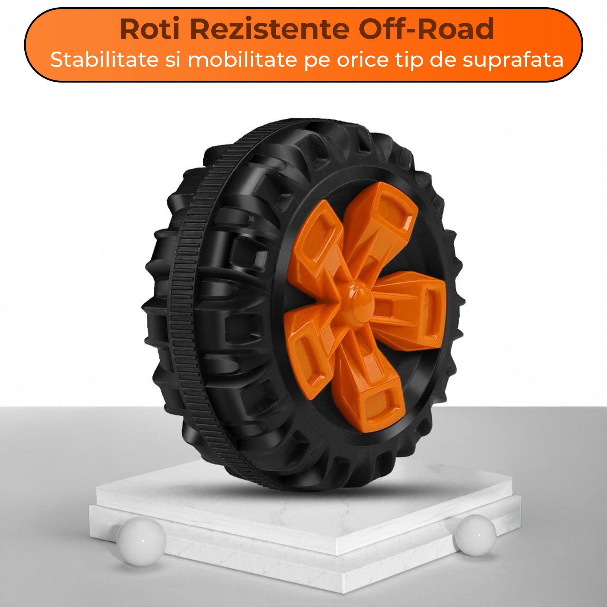 - Stabilitate off-road: tractiune dubla si 4 roti cu profil pentru teren variat.