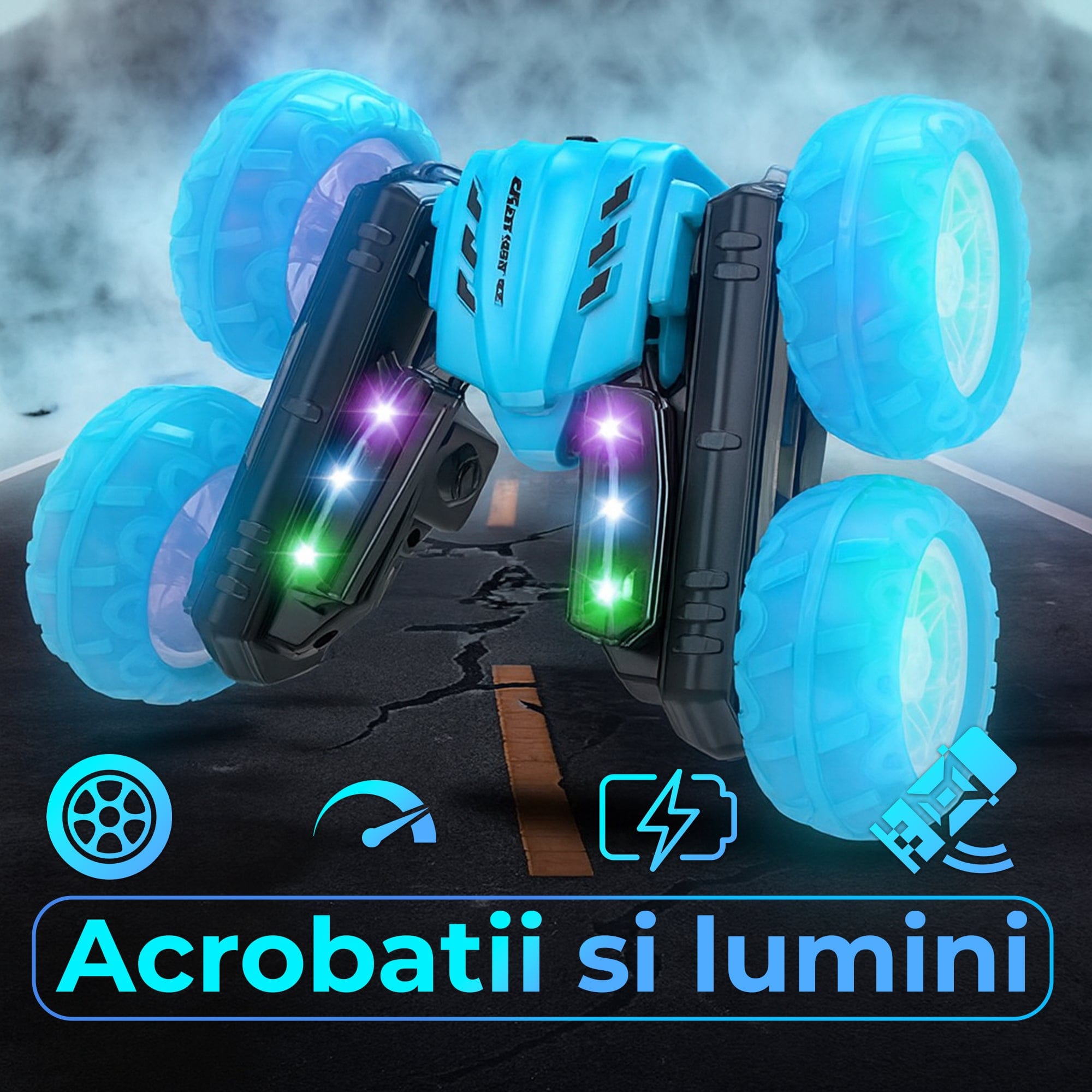 Masina cu telecomanda cu Rotire 360°, Timebox, 4WD, Off-road, lumini LED, Albastru