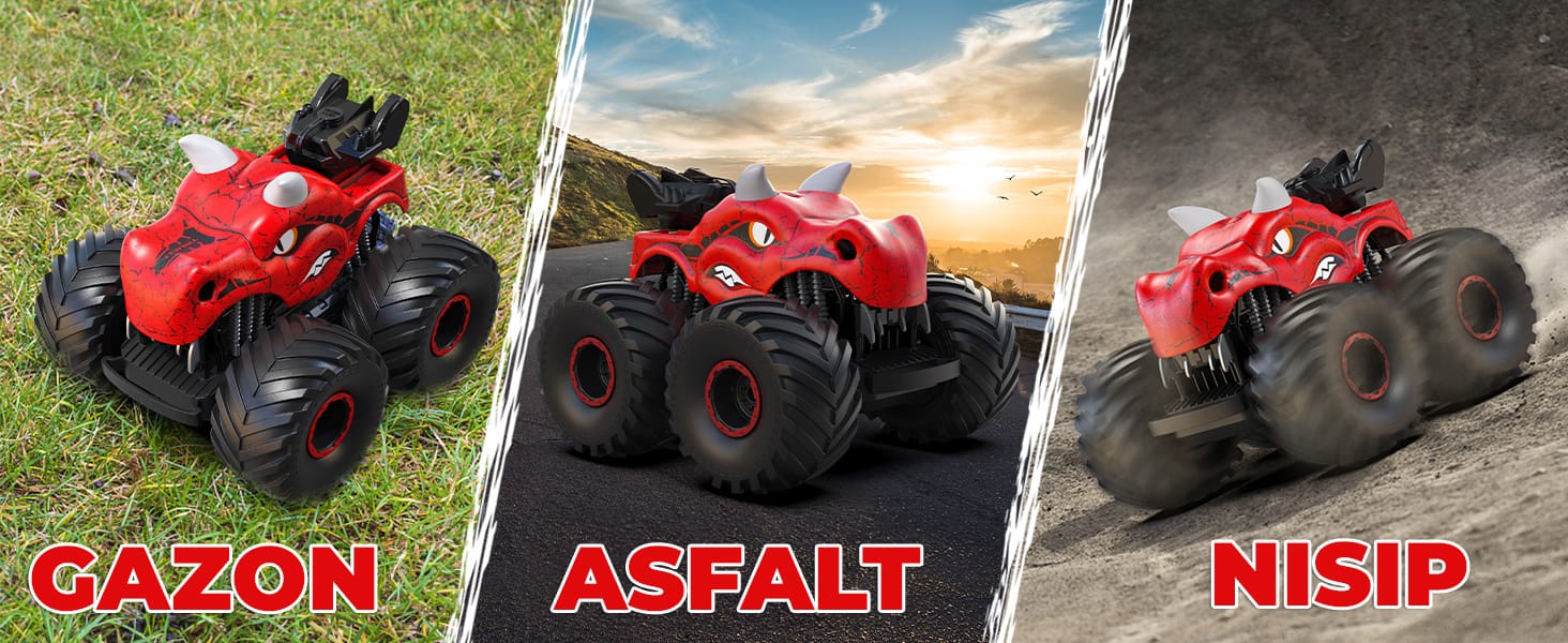 • Design unic de dinozaur: Mașina RC Timebox are un design captivant de Monster Truck dinozaur, perfect pentru cei mici.