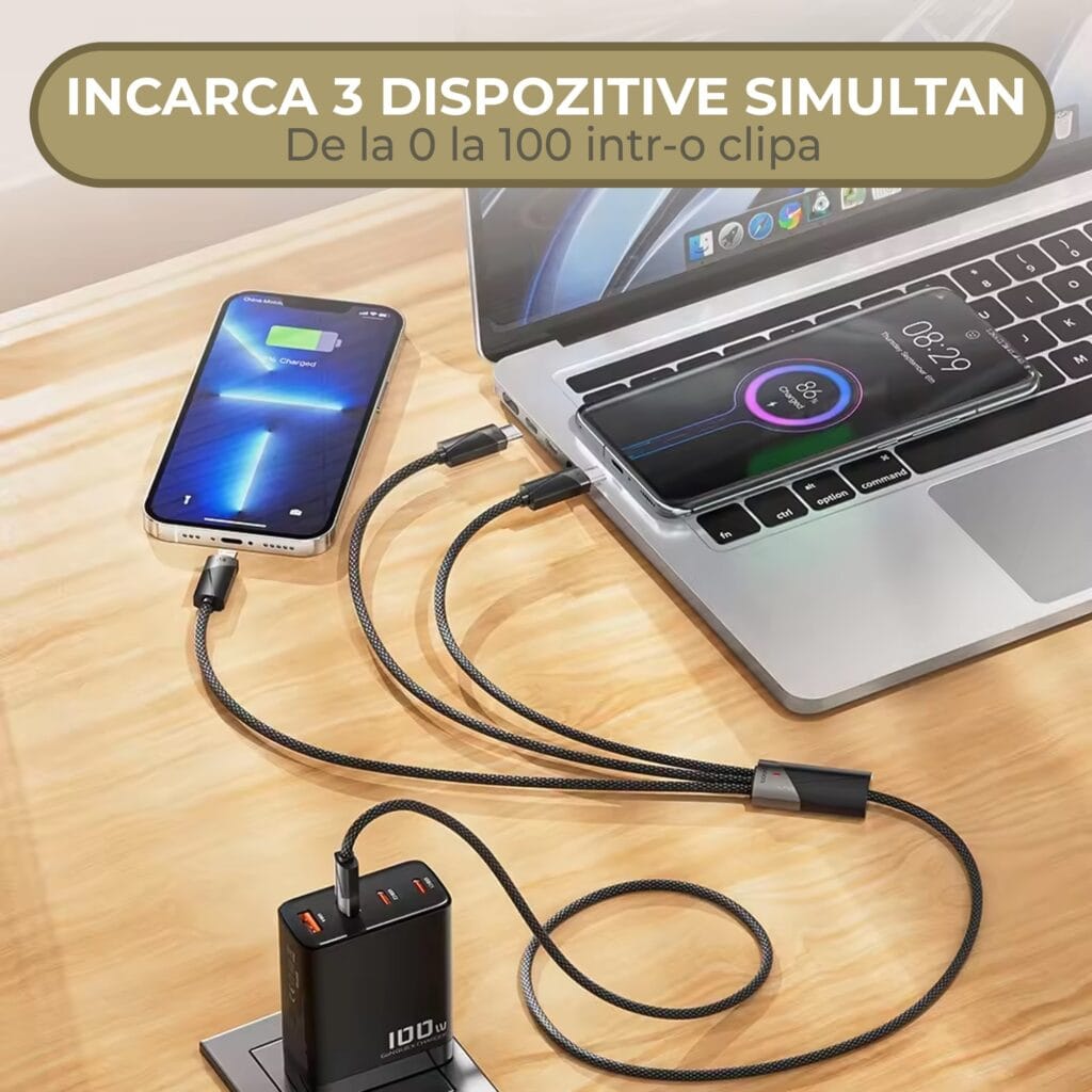- Putere de 100W: Suporta o putere de pana la 100W, asigurand o incarcare eficienta si rapida a telefoanelor, tabletelor, laptopurilor si altor dispozitive compatibile.