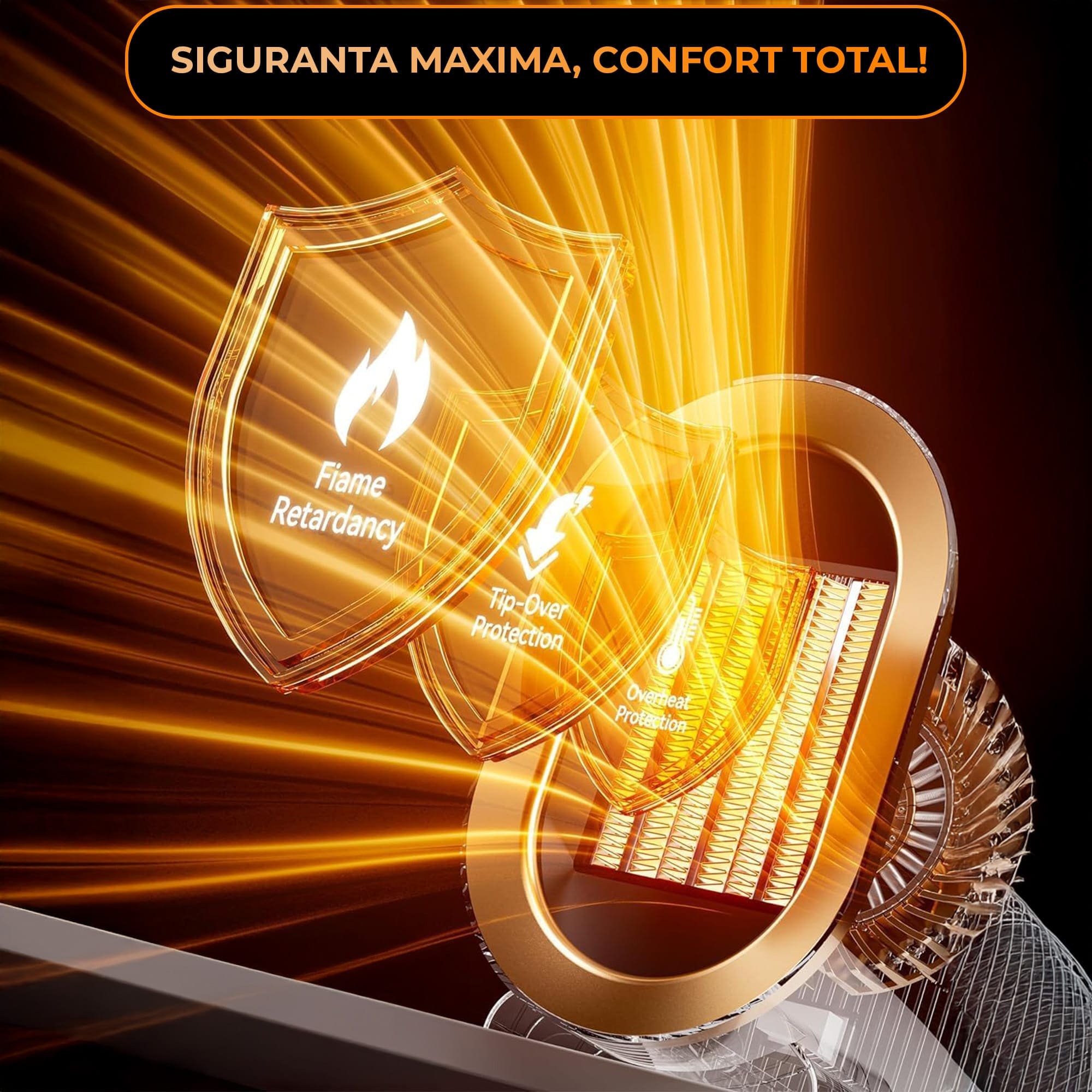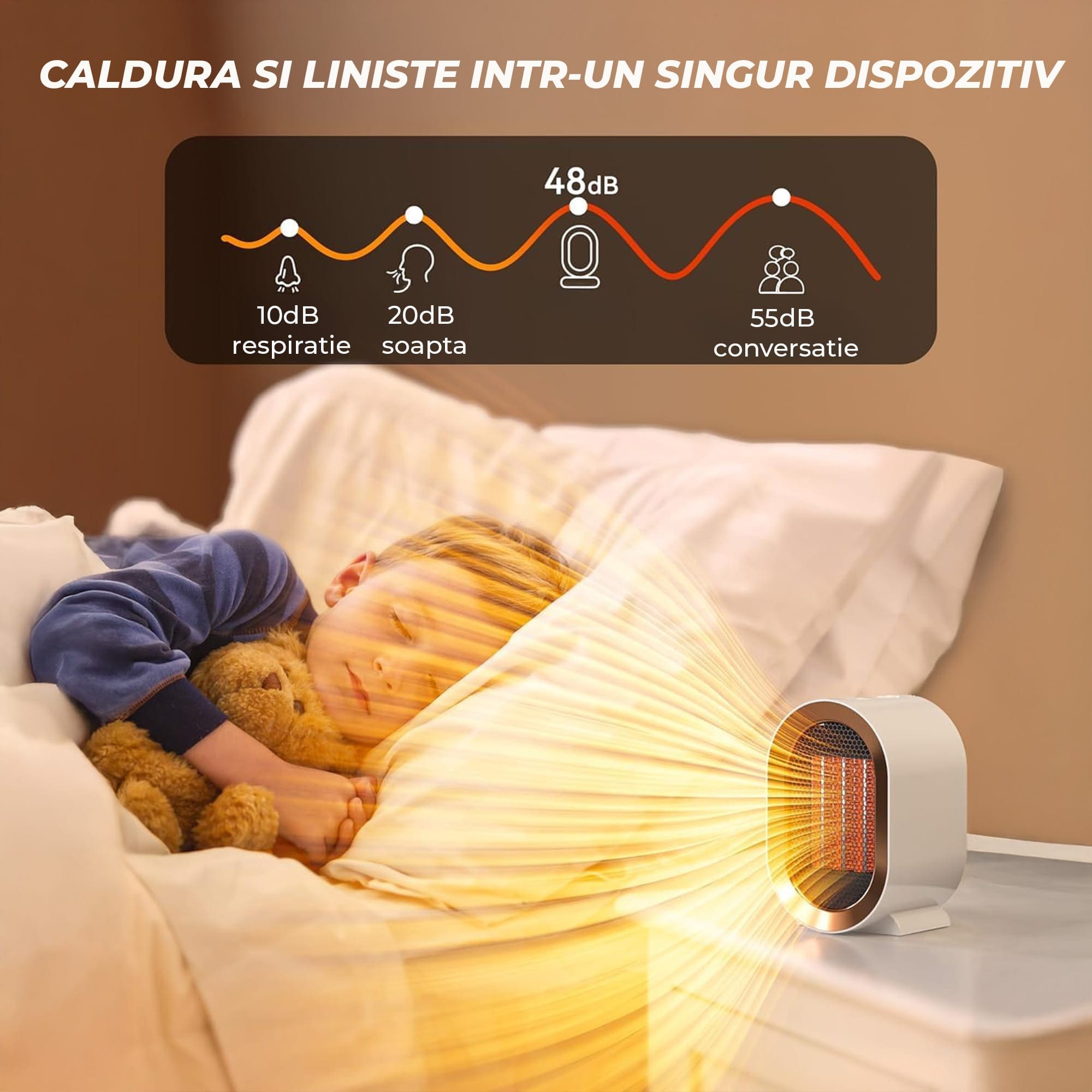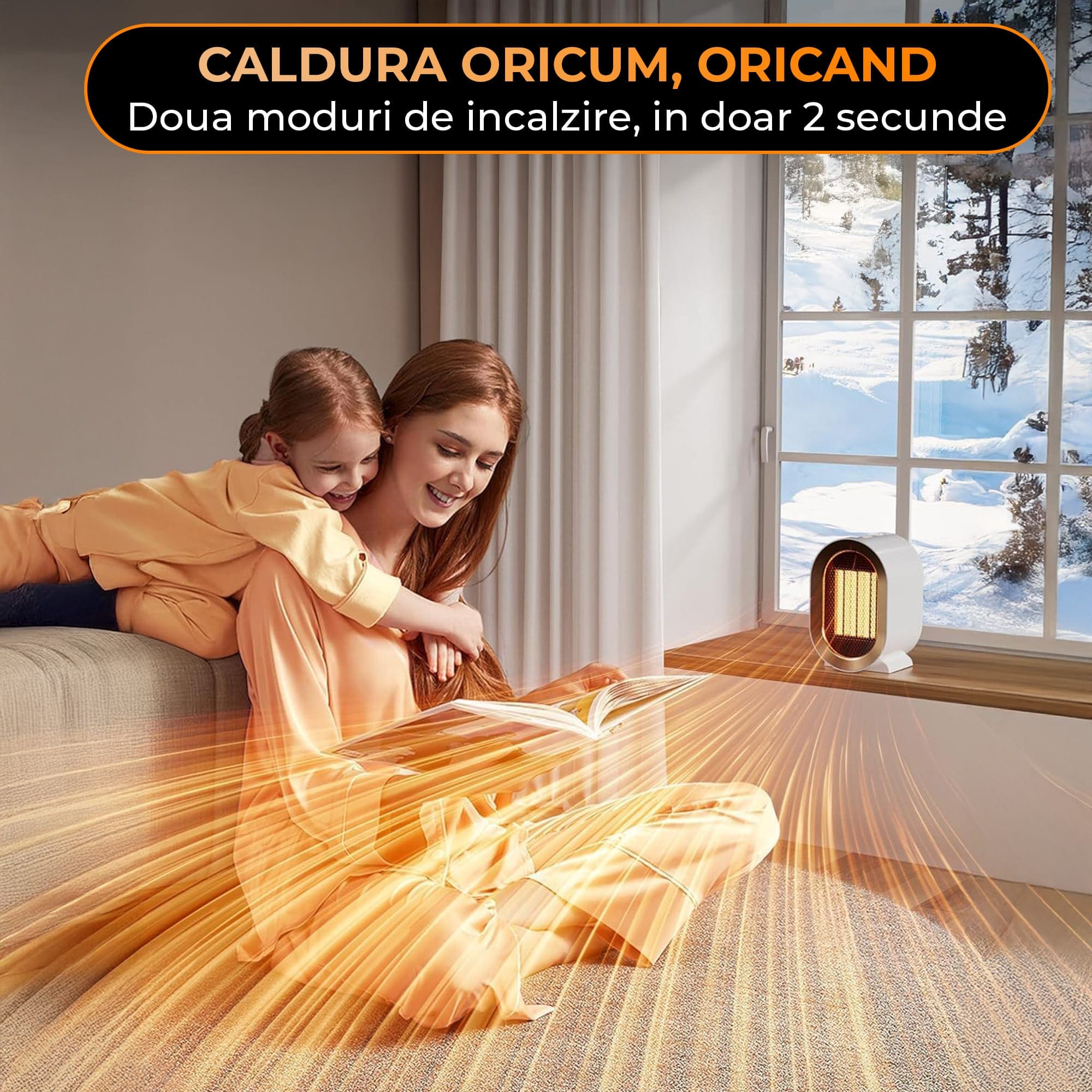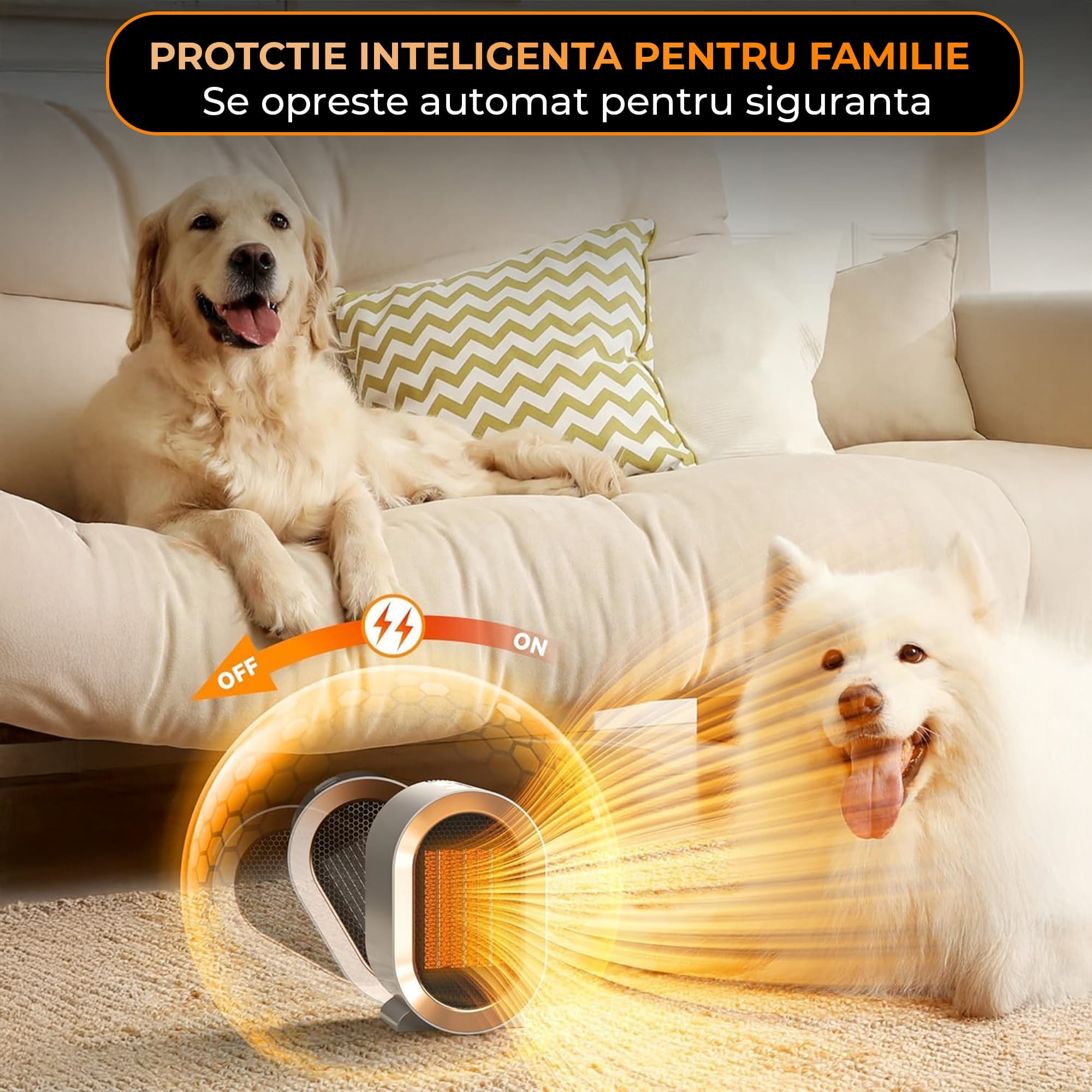 - Tehnologie ceramica: Elementele de incalzire ceramice asigura o distributie uniforma a caldurii, mentinand o temperatura constanta si confortabila.