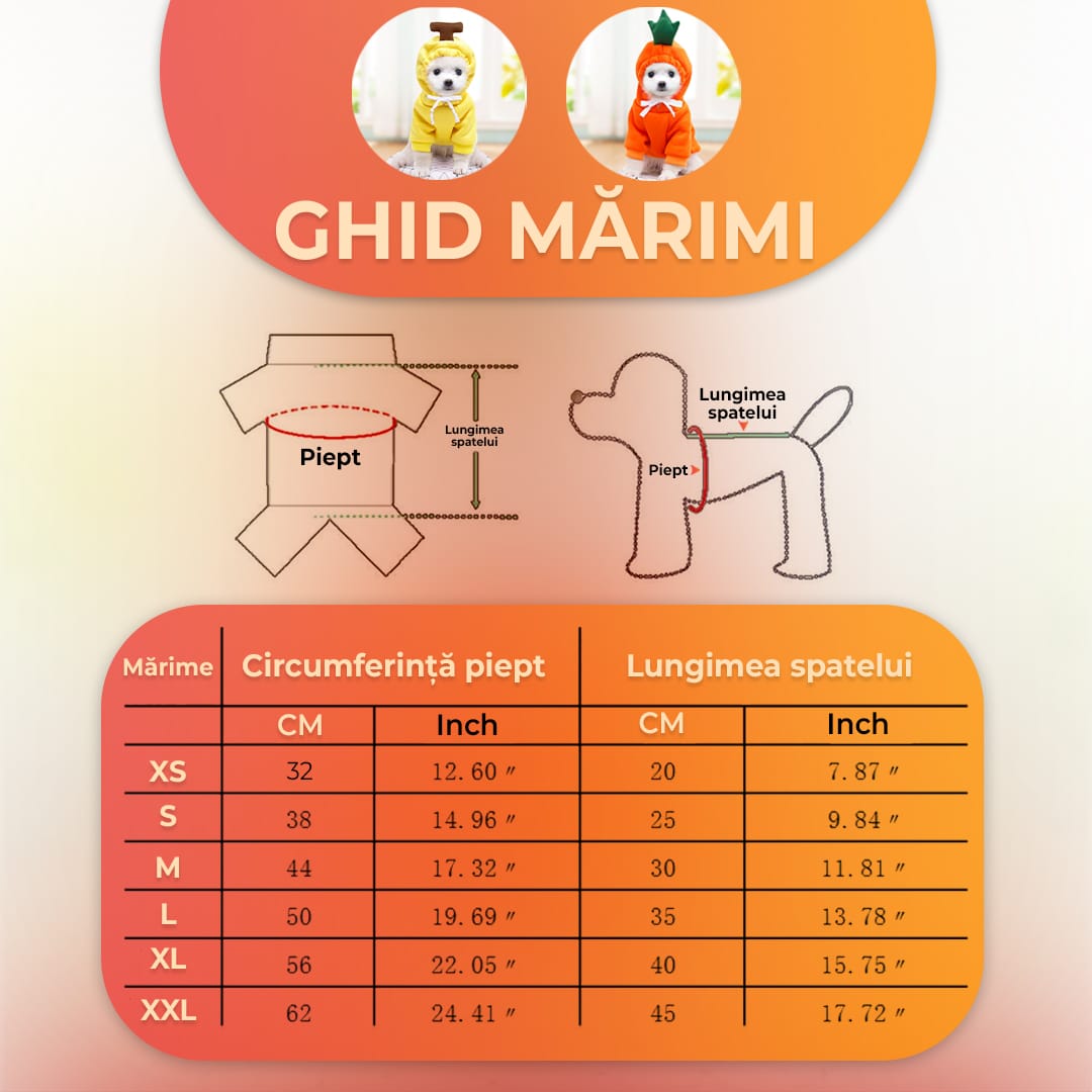 - Va rugam sa va asigurati ca masurati corect catelul inainte de a cumpara, pentru a asigura o potrivire perfecta a hainutei.