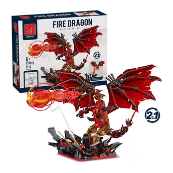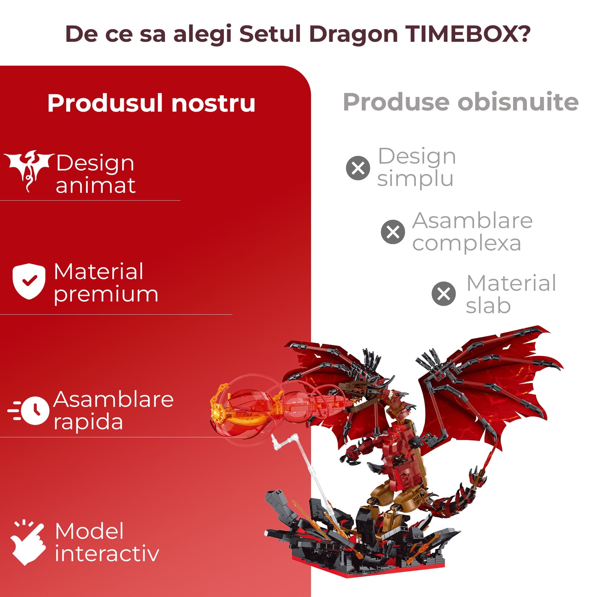 Set Constructie Dragon De Foc 2 In 1 Timebox, 1774 Piese LED ABS, Rosu