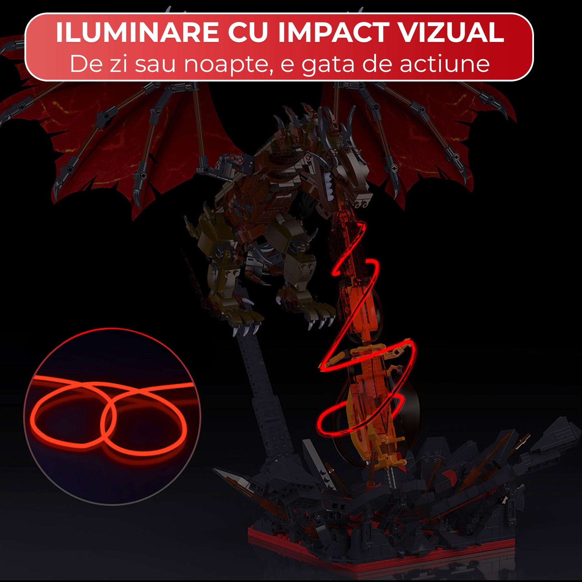 ⚡ Set Constructie Dragon de Foc 2-in-1, 1774 piese, LED, ABS premium, Rosu ⚡