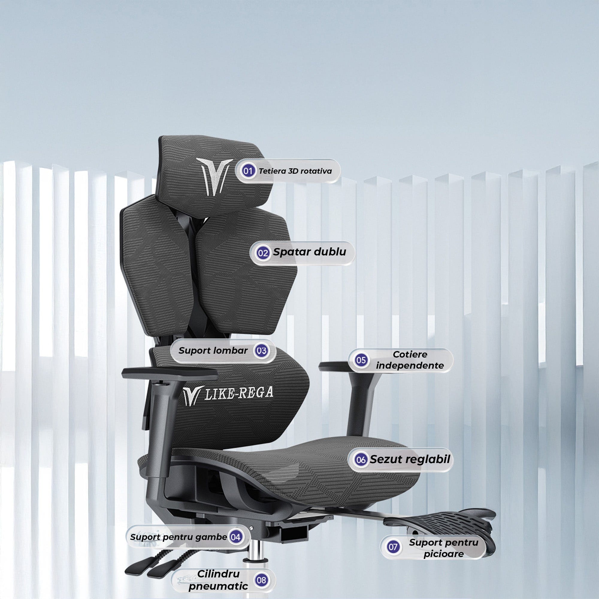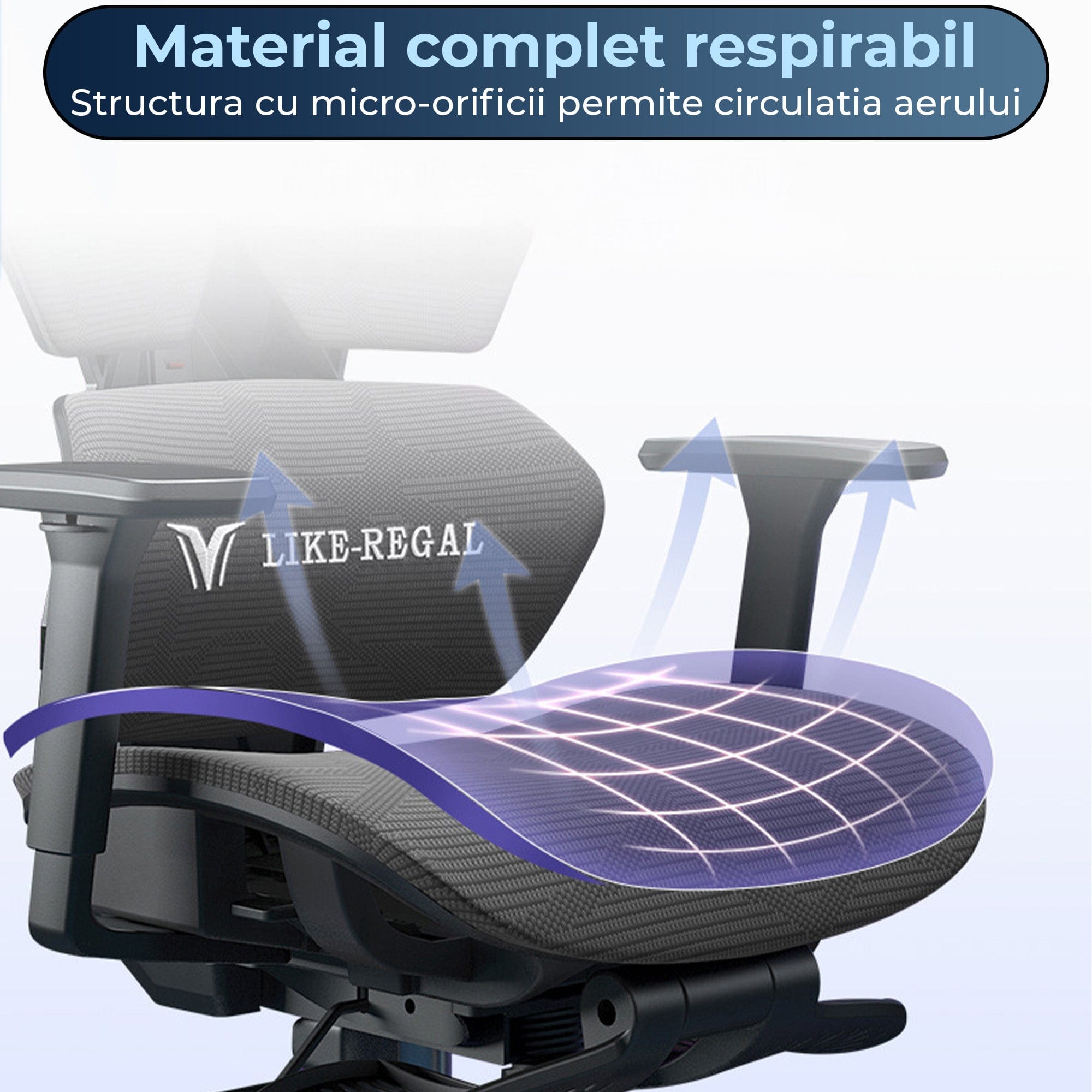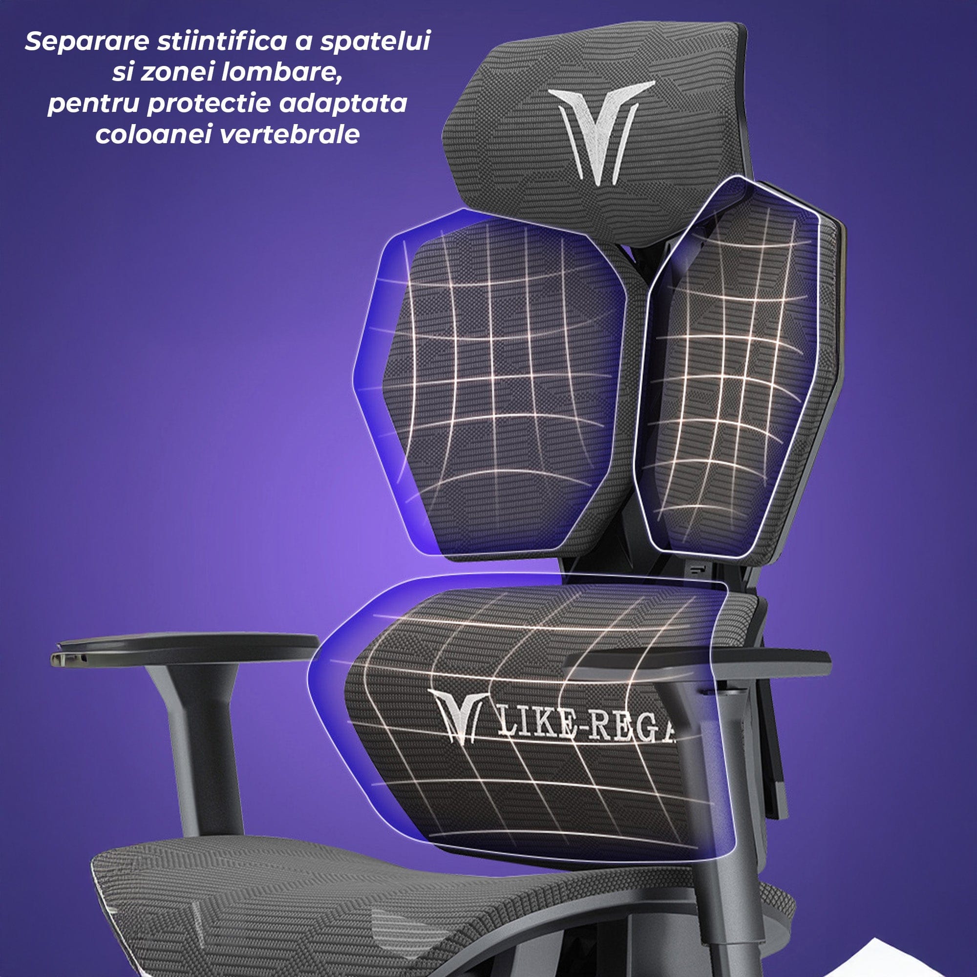 Spatar reclinabil si plasa respirabila pentru confort si ventilatie