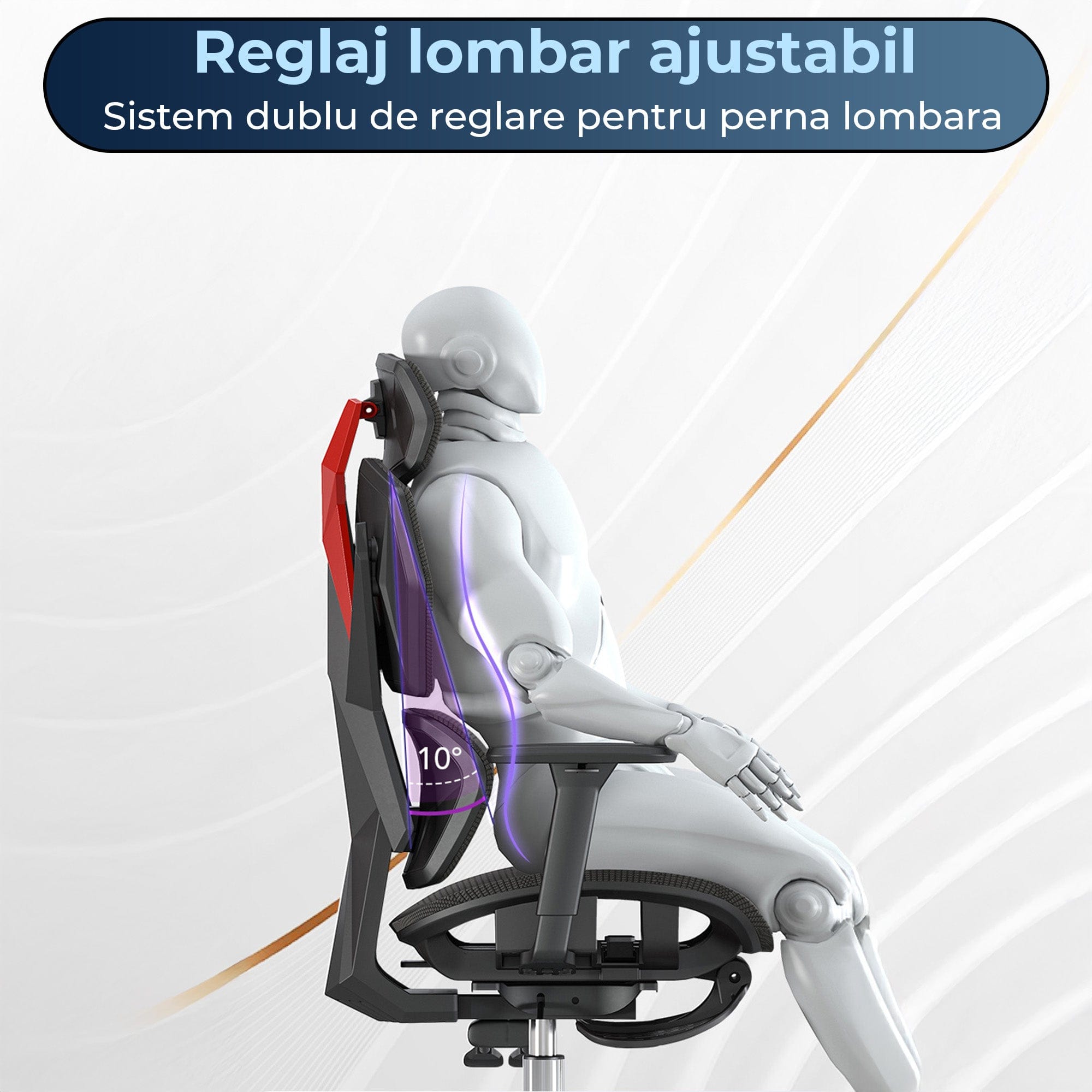 Suport lombar si sezut reglabil pe adancime pentru pozitie corecta