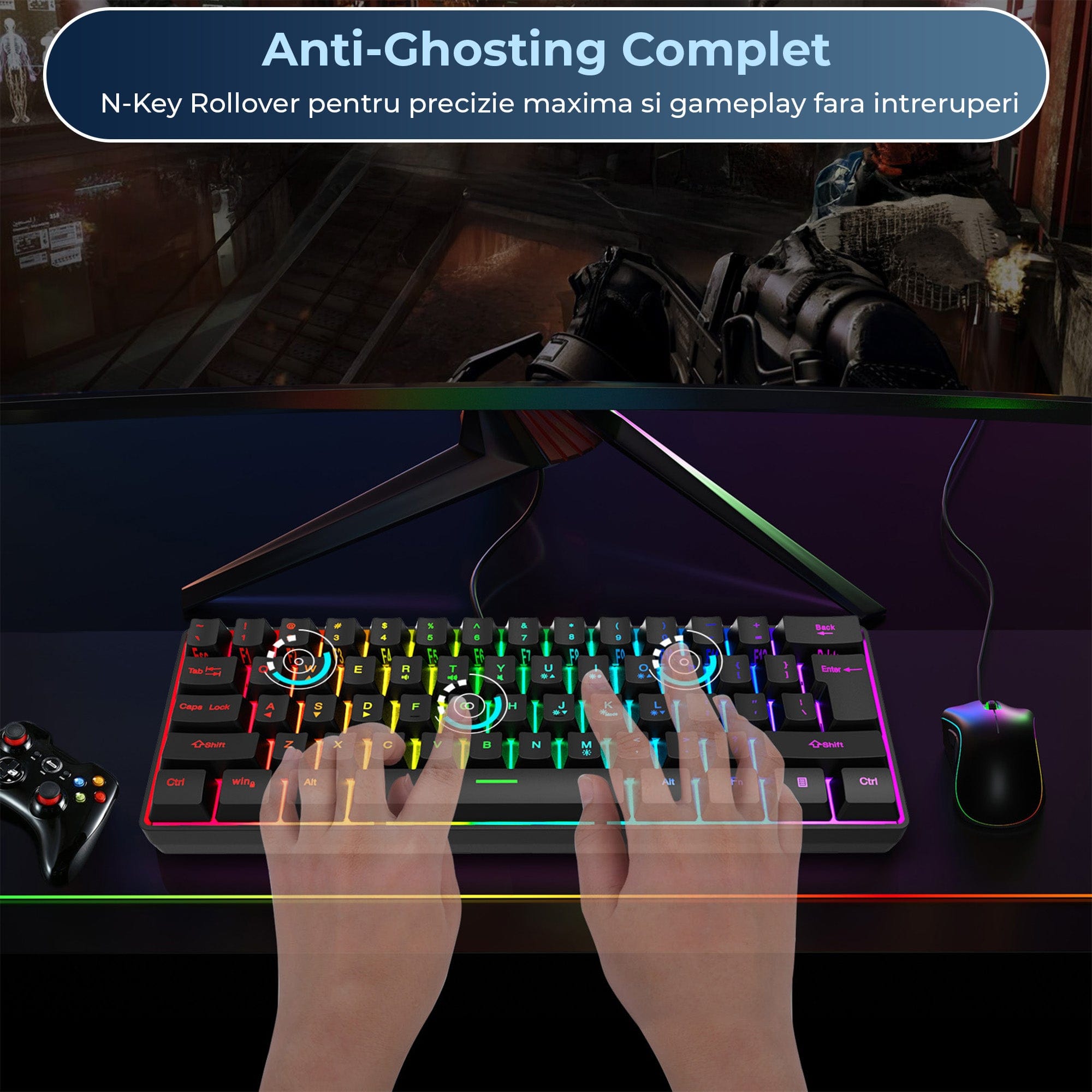 - Functie anti-ghosting pentru precizie in timpul jocurilor
