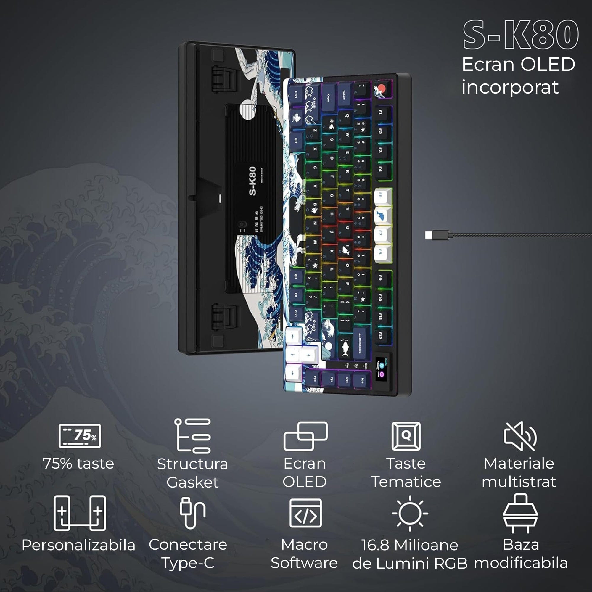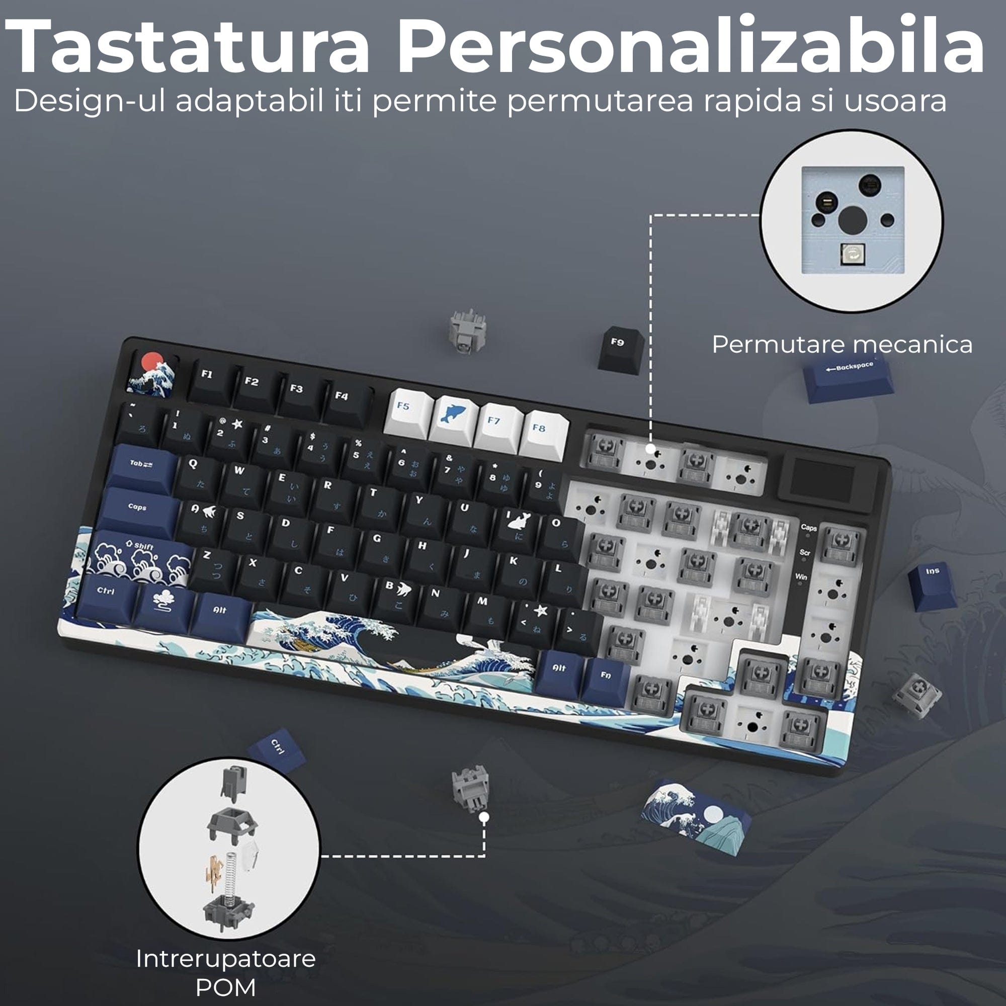 ⚡ Tastatura 75% RGB Timebox cu Ecran Color, Hot-swappable, USB-C ⚡