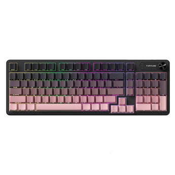 Tastatura Timebox cu fir, 98 taste RGB, Design silentios si rezistent la apa, Mecanic la atingere, Cablu 1.5m, Taste PBT, Ideala pentru birou, gaming sau laptop, Negru/Roz