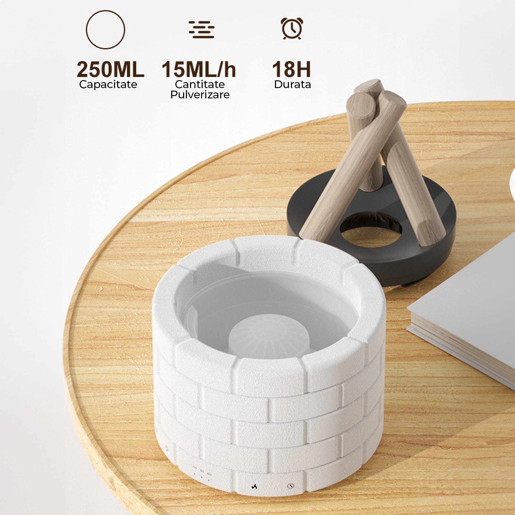 - Difuzor aromaterapie Bonfire: Capacitate 250ml.