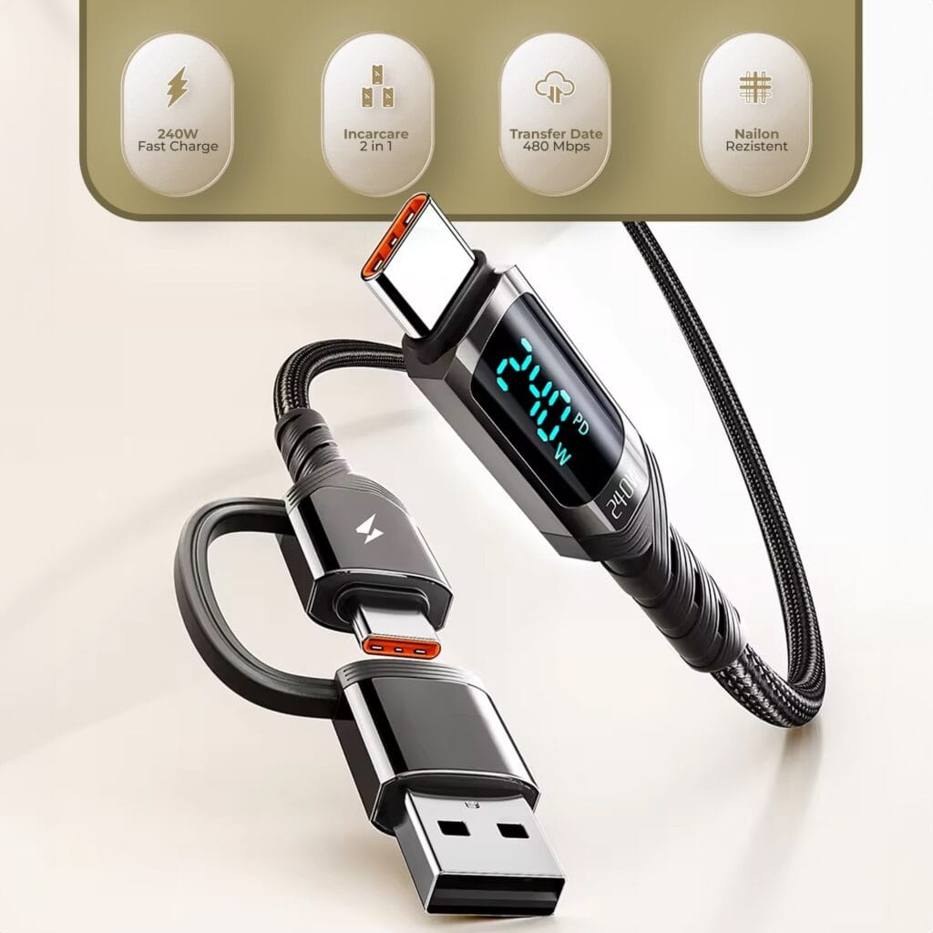 • Cablu 2 în 1 pentru Date și Încărcare: USB și Type-C la USB-C, ideal pentru multiple dispozitive.