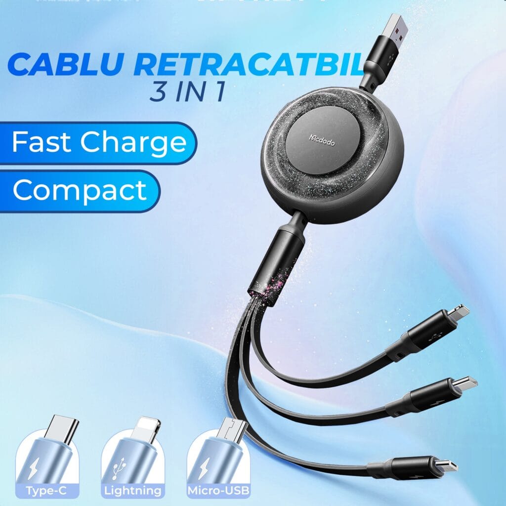 | Continut pachet | 1 x Cablu Retractabil 3 in 1 Fast Charge |