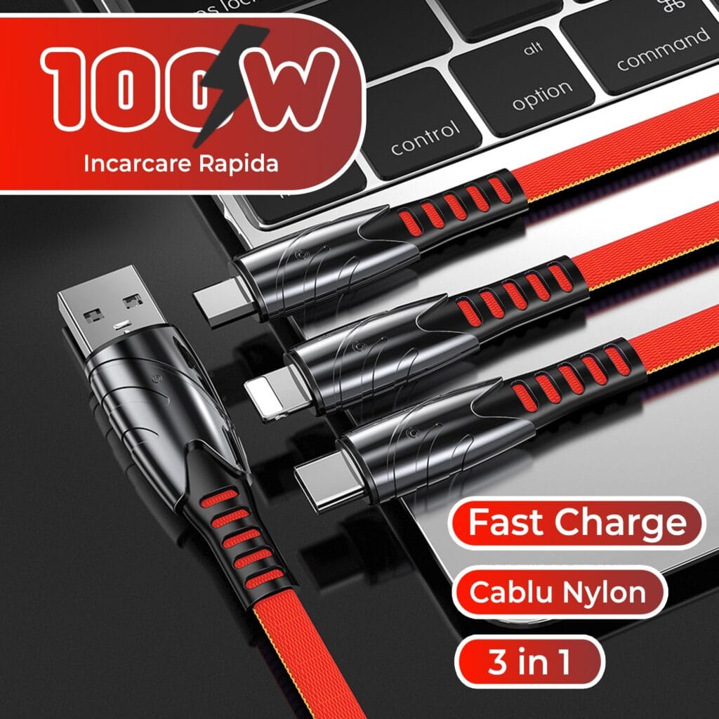 - Tip de cablu: 3 in 1, USB, Lightning, Type-C, Micro-USB.