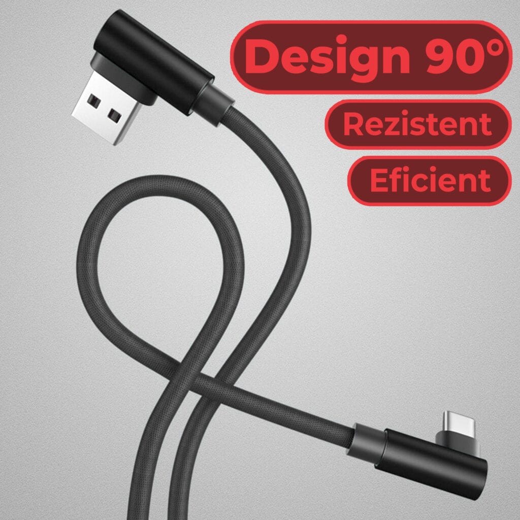 Cablu Date si Incarcare Rapida Timebox, USB la Type-C, unghi 90 grade, 3m, Negru