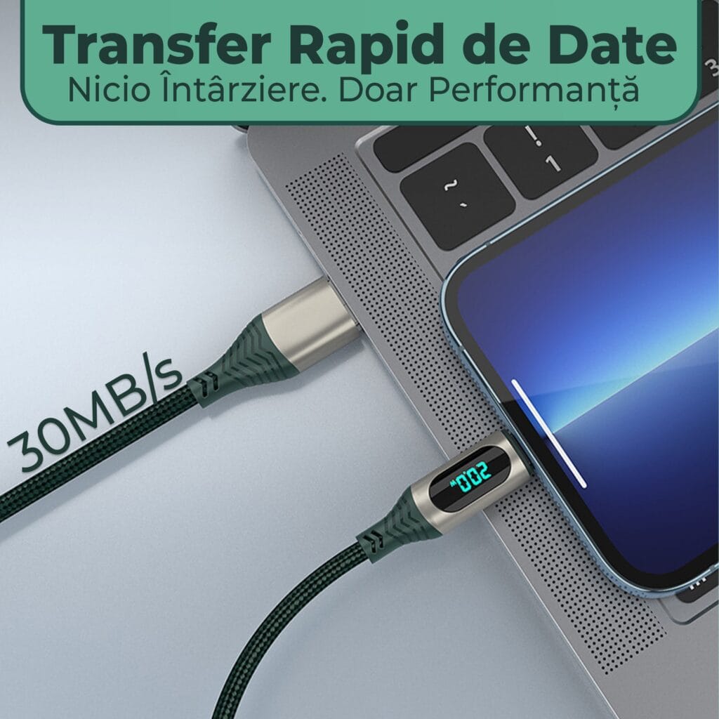 - Transfer rapid de date: Pe langa incarcarea rapida, cablul permite si transferul rapid de date intre dispozitivele tale.