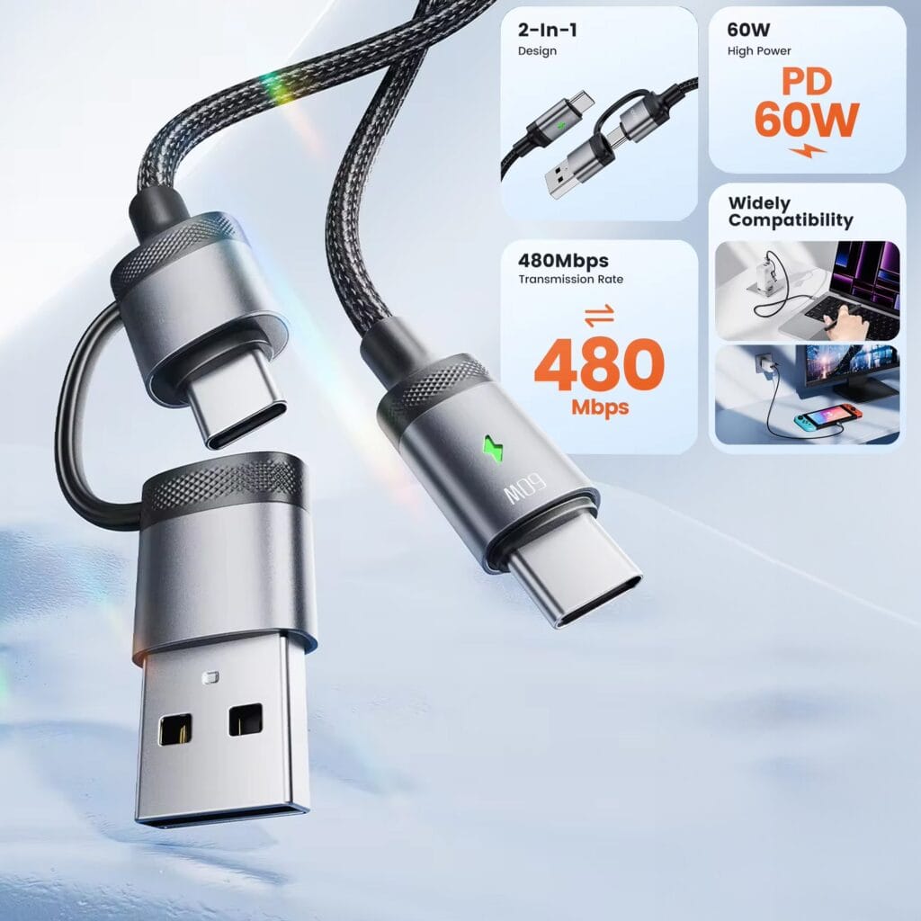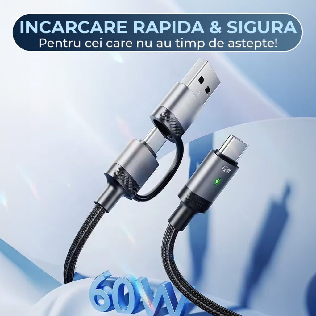 • Performanță rapidă: Cablul Timebox 2 în 1 oferă încărcare rapidă de 60W și transfer de date la 480Mbps.