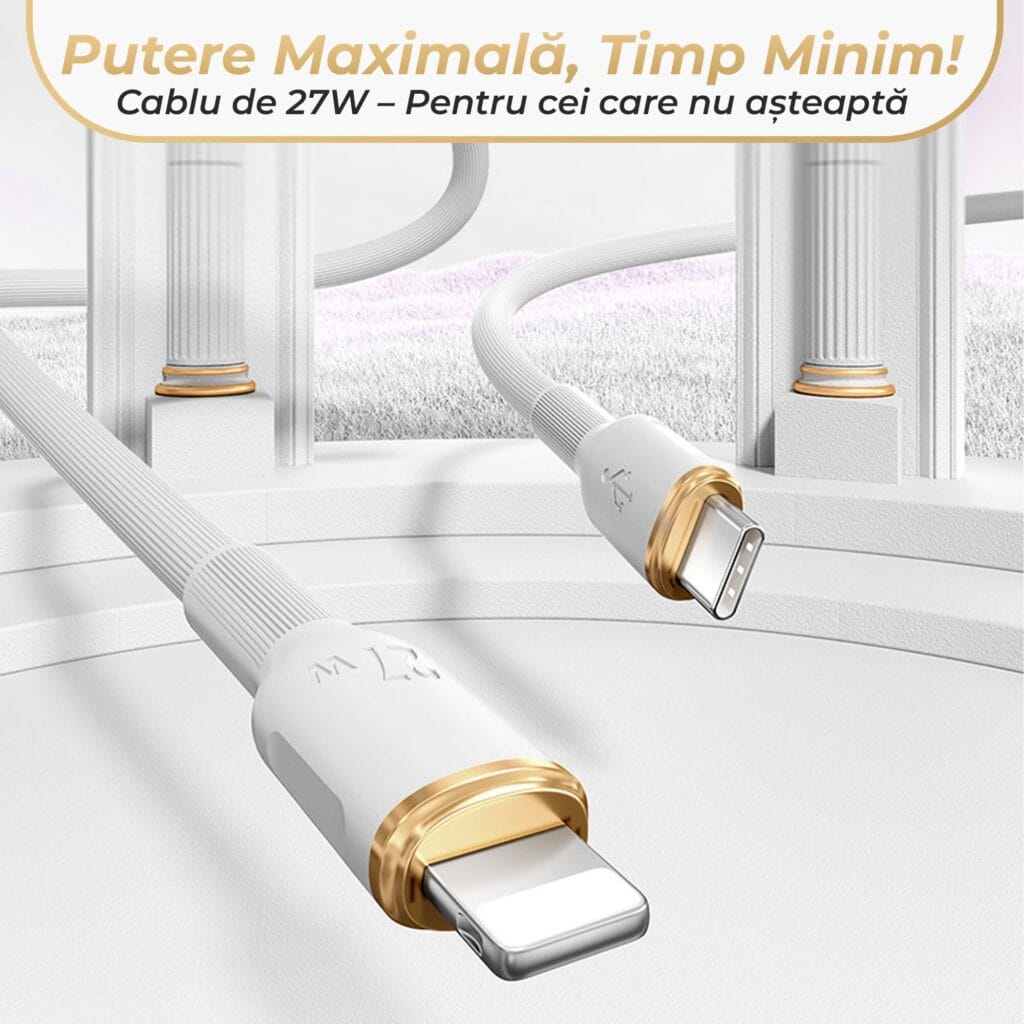 - USB-C la Lightning: Conectorii versatili ofera compatibilitate extinsa cu o gama larga de dispozitive Apple, inclusiv iPhone, AirPods si MacBook.