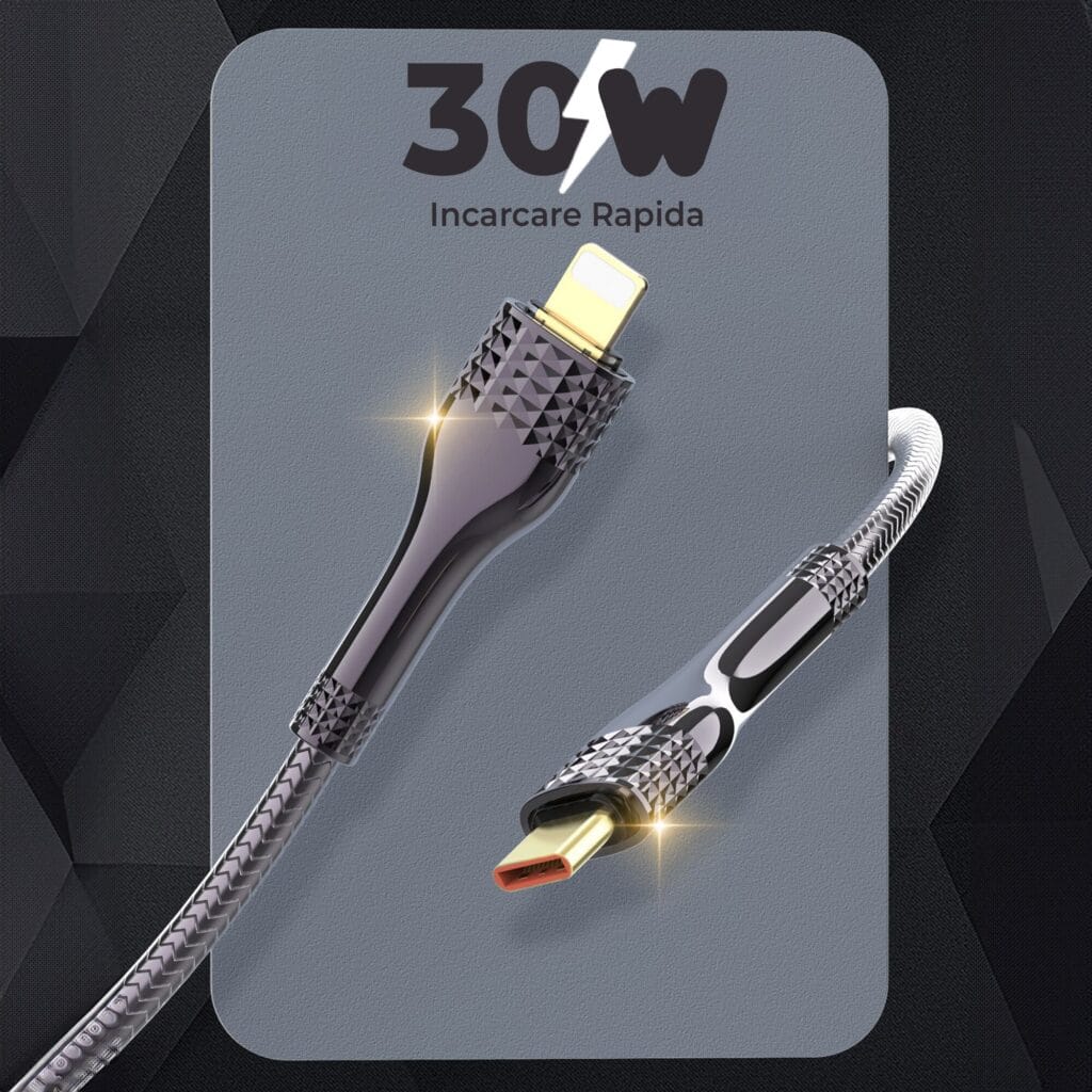 Cablu Date si Incarcare Rapida Timebox, 30W, USB-C la Lightning, 1 m, Negru