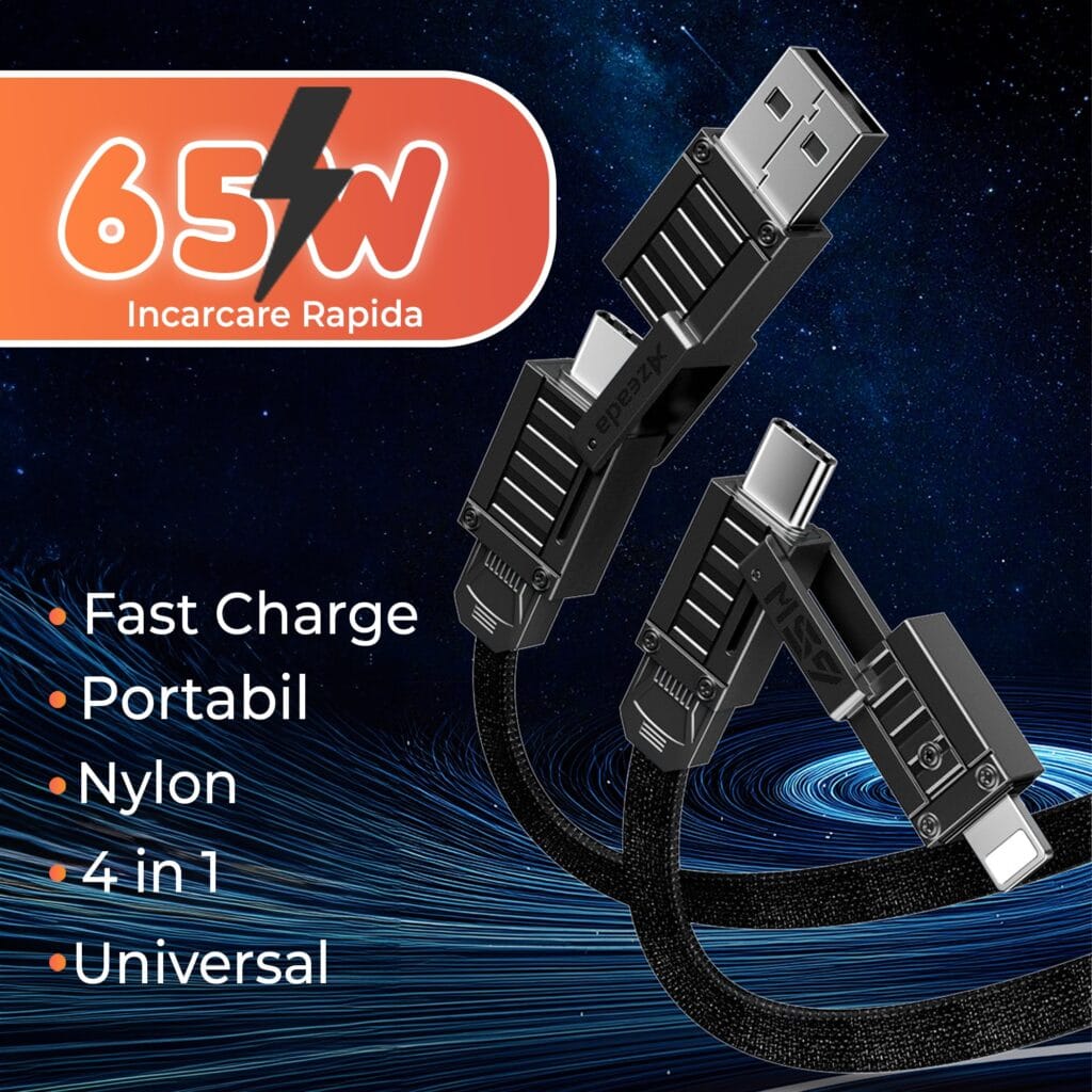 - Tip de cablu: 4 in 1, USB, Lightning, Type-C, ideal pentru diverse dispozitive.