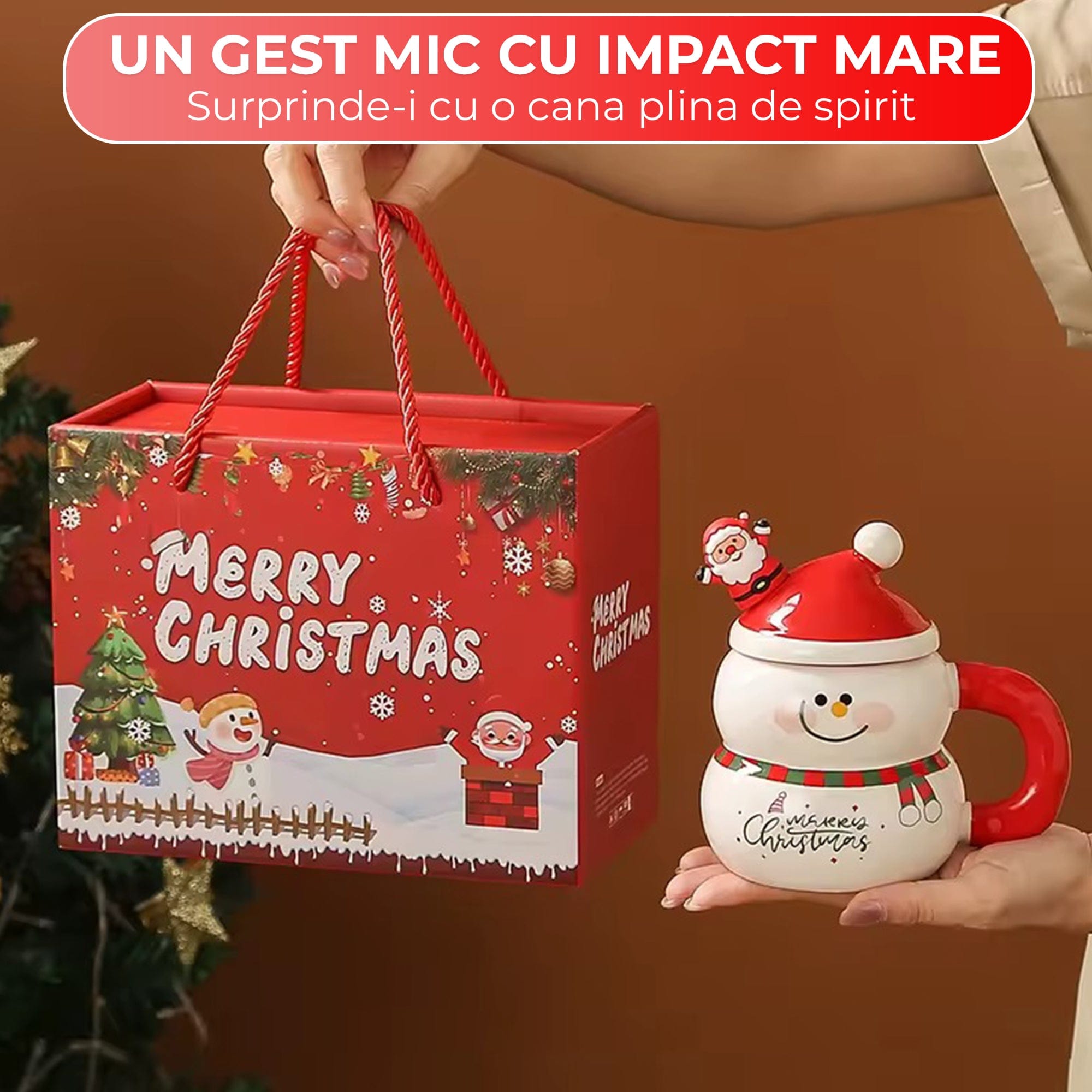⚡ Cana Craciun 400ml Om de Zapada cu Capac si Lingurita ⚡