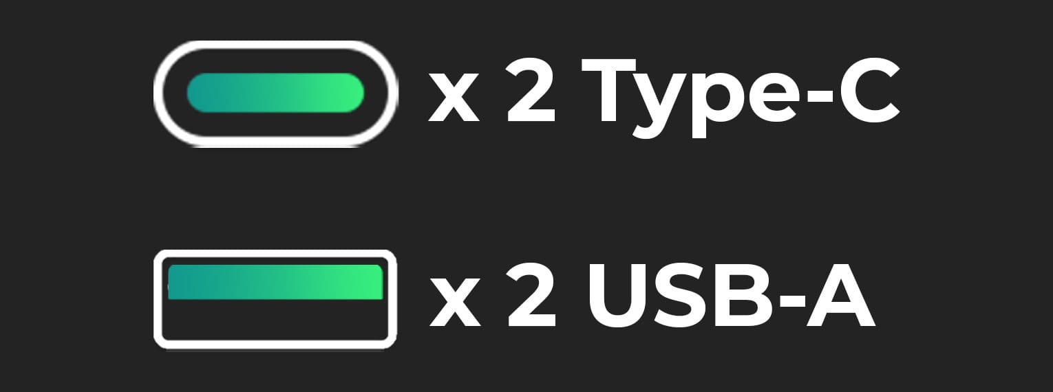- 4 Porturi: Echipat cu 4 porturi (2 x Type-C, 2 x USB), îți oferă posibilitatea să încarci simultan mai multe dispozitive.