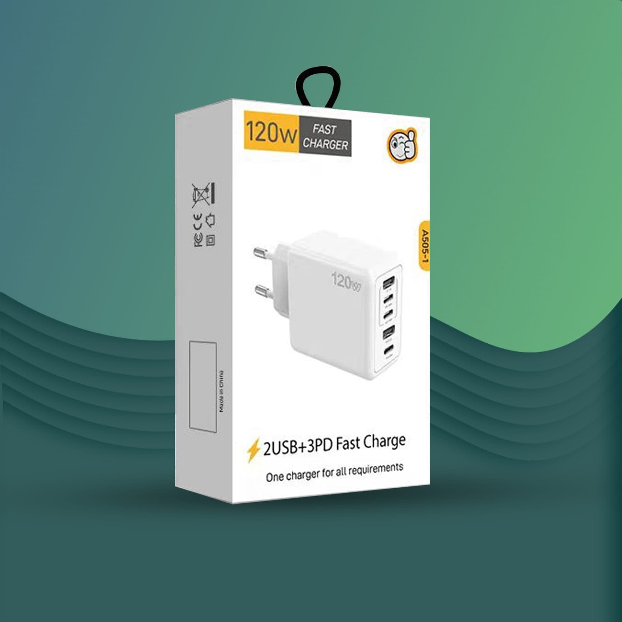 - 5 porturi: Dispune de 3 porturi Type-C si 2 porturi USB, permitandu-ti sa incarci simultan pana la cinci dispozitive, oferind flexibilitate si comoditate maxima.